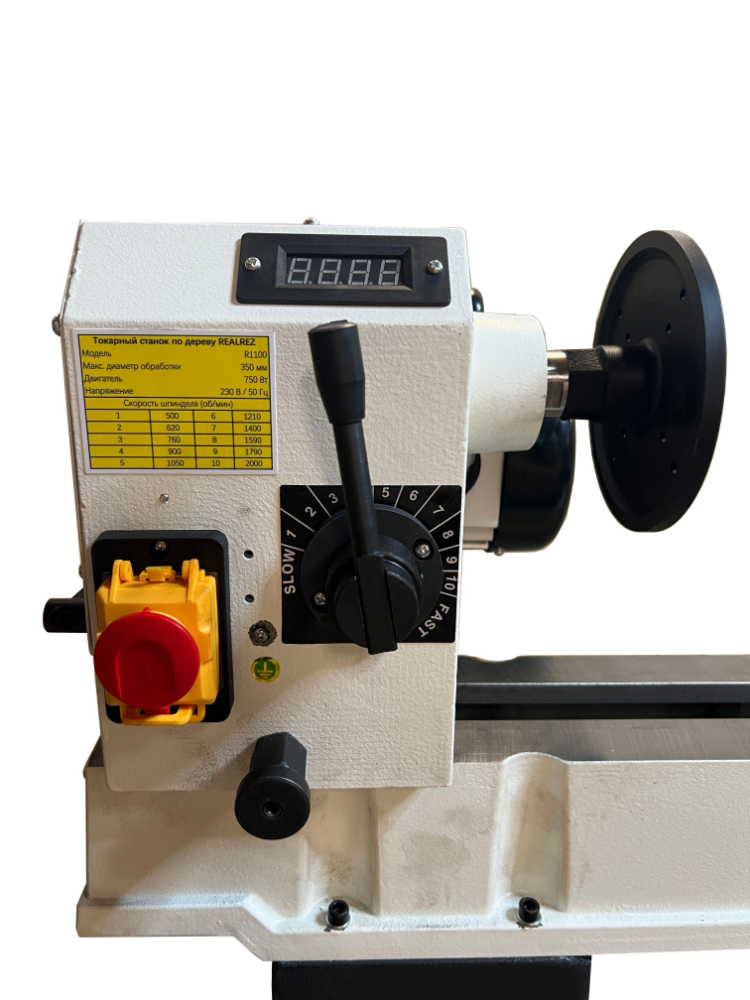 Токарный станок REALREZ R1100 применяется для обработки древесины c целью придания ей необходимых форм и размеров методом точения. На станке выполняют черновое и чистовое точение цилиндрических, конических, фасонных поверхностей и т. п. Заготовка получает вращение от шпинделя, скорость регулируется с помощью вариатора в диапазоне от 500 до 2000 об/мин. Станина, подручник и опоры изделия выполнены из высококачественного чугуна. Направляющие шлифуются с высокой точностью для обеспечения плавного хода подручника, передней и задней бабки.