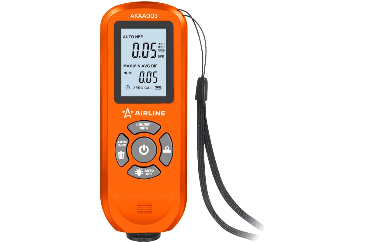 Толщиномер ЛКП AIRLINE AKAA003 измеряет толщину лакокрасочного покрытия на любых металлах, автоматически определяя их тип - черный или цветной. Особенность прибора - информативный дисплей, отражающий одновременно 2 значения: текущее значение замера и статистику измерений. Точность и надежность этого толщиномера позволяет работать как с бюджетными автомобилями, так и с автомобилями премиум класса, содержащими алюминиевые детали. Толщиномер автоматически обнаруживает базовую поверхность и устанавливает соответствующий режим. Поставляется с калибровочным комплектом.