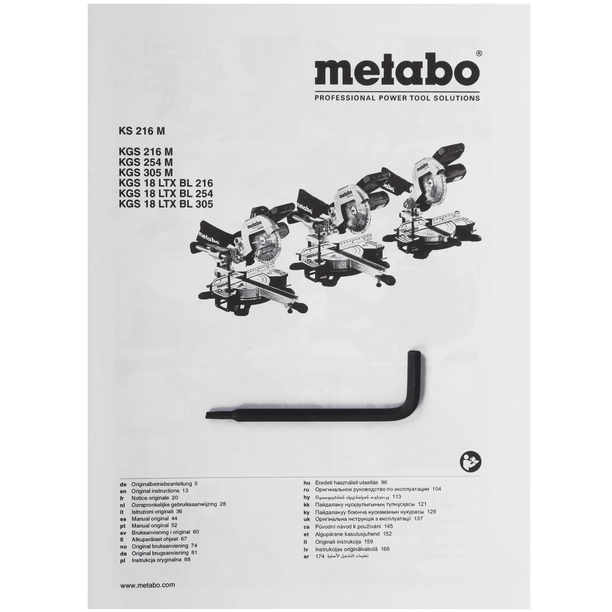Пила торцовочная Metabo KGS 216 M с электрическим двигателем мощностью 1500 Вт. Число оборотов холостого хода 5000 об/мин. Диаметр диска 216 мм. Посадочный диаметр диска 30 мм. Инструмент оснащен подсветкой для работы при недостаточном освещении, есть лазер для проекции линии реза и идеально точных распилов. Metabo KGS 216 M отличается прочной конструкцией, корпус выполнен из алюминиевого сплава. Удобная система управления для быстрой и производительной работы. Отвод пилок через встроенную воронку. Зажим надежно фиксирует заготовку. Возможность совершать угловые резы. Простая замена полотна. Тип пылесборника мешок. Длина сетевого кабеля 2 м. Вес товара 13,5 кг.