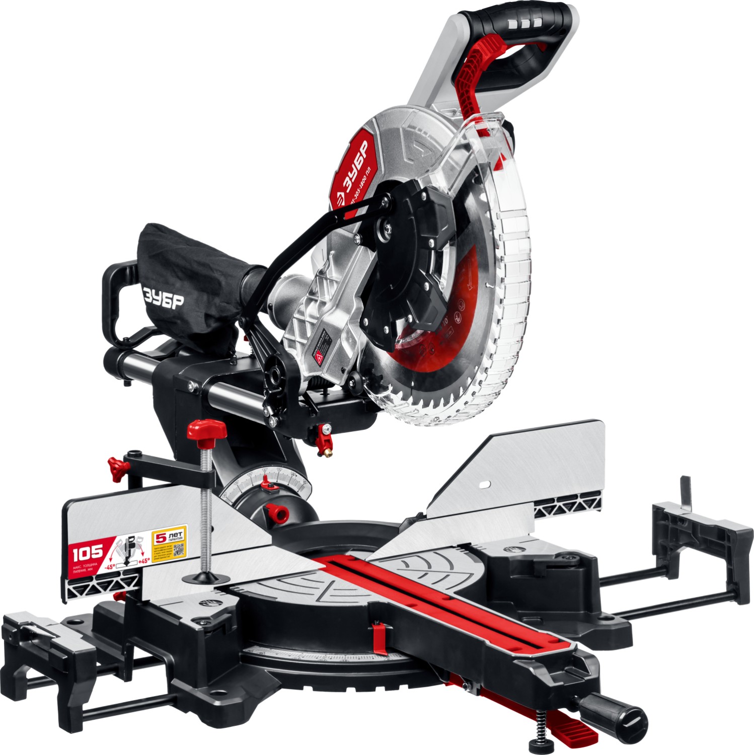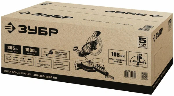 Торцовочная пила с протяжкой ЗУБР ЗПТ-305-1800 ПЛ — профессиональный инструмент, объединяющий мощность и многофункциональность для решения самых сложных задач в столярном деле, мебельном производстве и строительстве. Мощный двигатель на 1800 Вт и диск диаметром 305 мм обеспечивают глубокие и чистые прямые, косые (до 47°), наклонные и комбинированные резы в древесине, ДСП, МДФ, ламинированных панелях и пластиковых материалах. Уникальная конструкция с функцией протяжки делает пилу незаменимой для обработки крупногабаритных заготовок, где точность и скорость играют ключевую роль.
