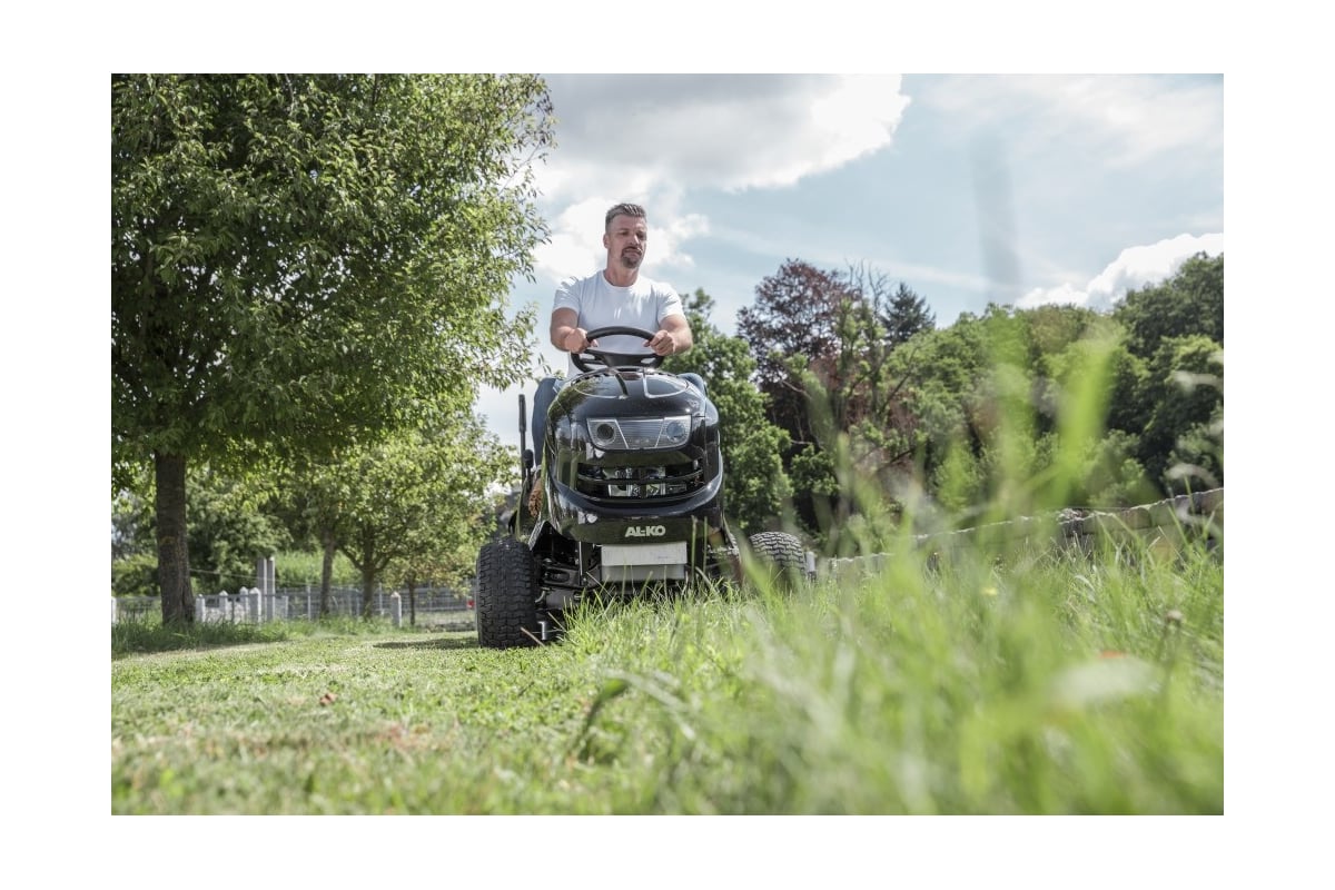 Трактор AL-KO T 15-93.9 HD-A BLACK EDITION 119932 применяется для ухода за газонной травой на частном участке и различных работ в саду.
