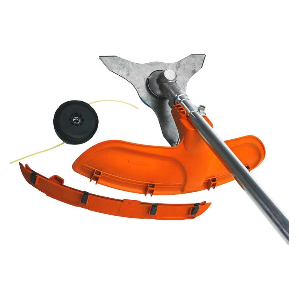 - Универсальность использования - кошение травы с помощью лески, жёсткой и высокой травы с помощью ножа, кустарника и поросли с помощью диска