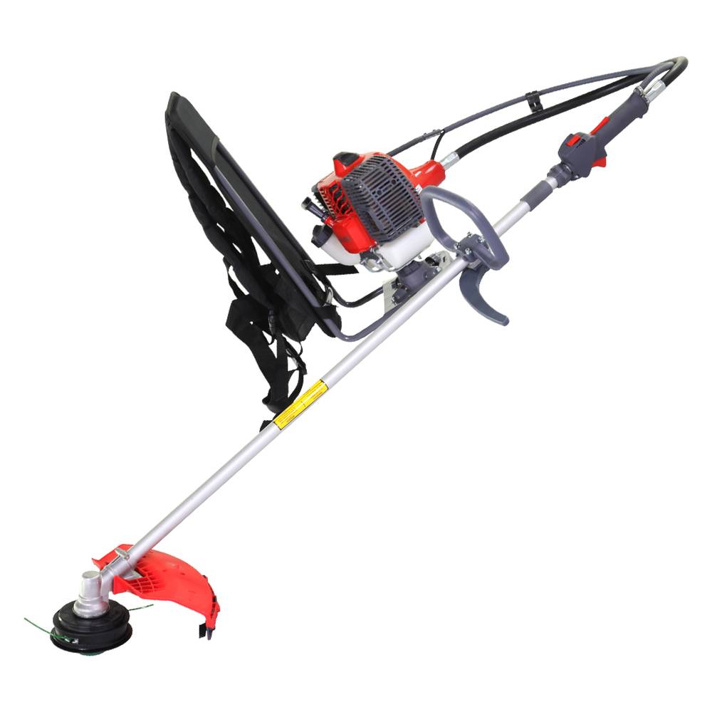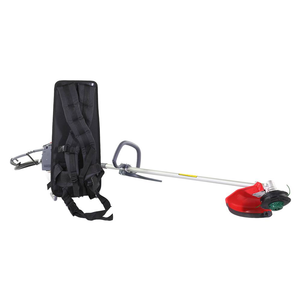 Данная мотокоса функционирует на базе надежного бензинового двигателя рабочим объемом 40,2 куб. см. и мощностью 2,1 л.с. Емкость топливного бака составляет 0,87 литра. Удобная конструкция для переноски инструмента на спине обеспечивает оператору комфортную работу с триммером.