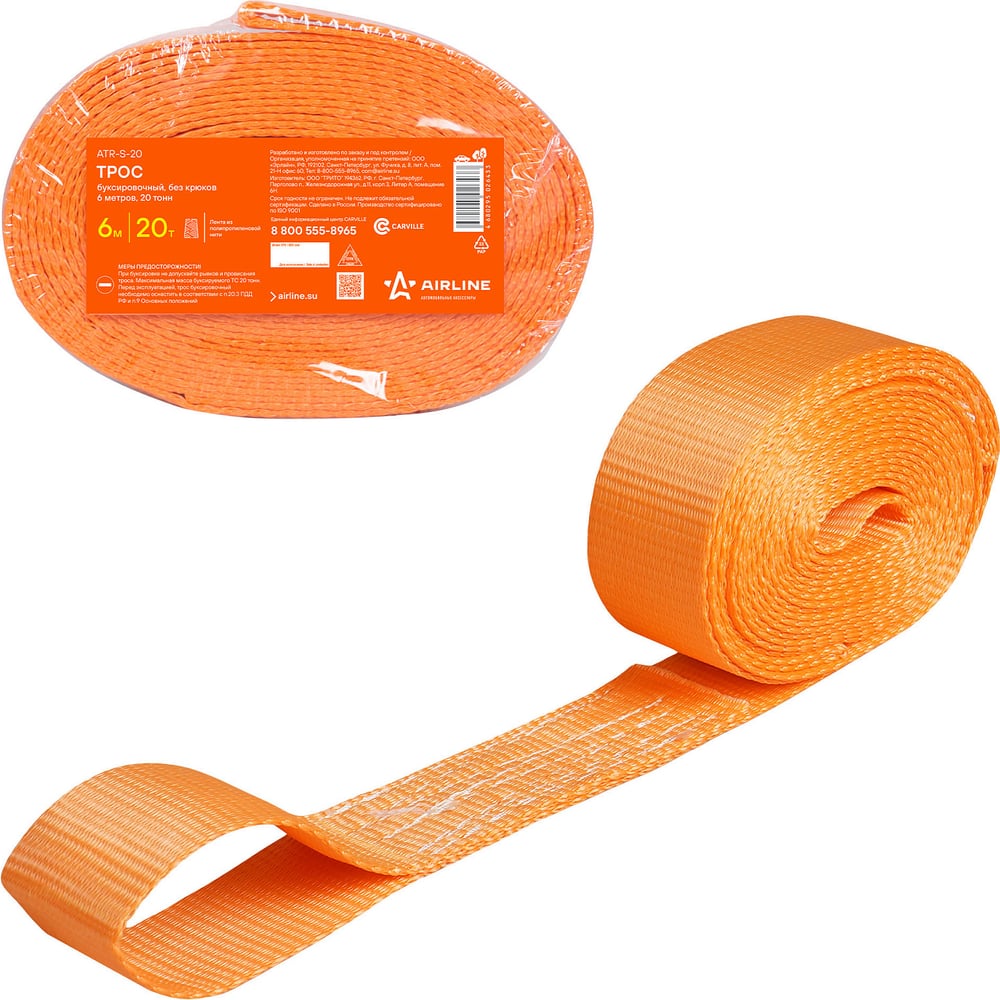 Буксировочный трос (лента 20 т, 6 м, без крюков) Airline ATR-S-20 выполнен из полипропилена. Морозо- и влагостойкая лента успешно эксплуатируется в различных погодных условиях. Длина изделия соответствует нормам ПДД РФ. Значительная ширина ленты (70 мм) способствует ее устойчивости к нагрузкам.