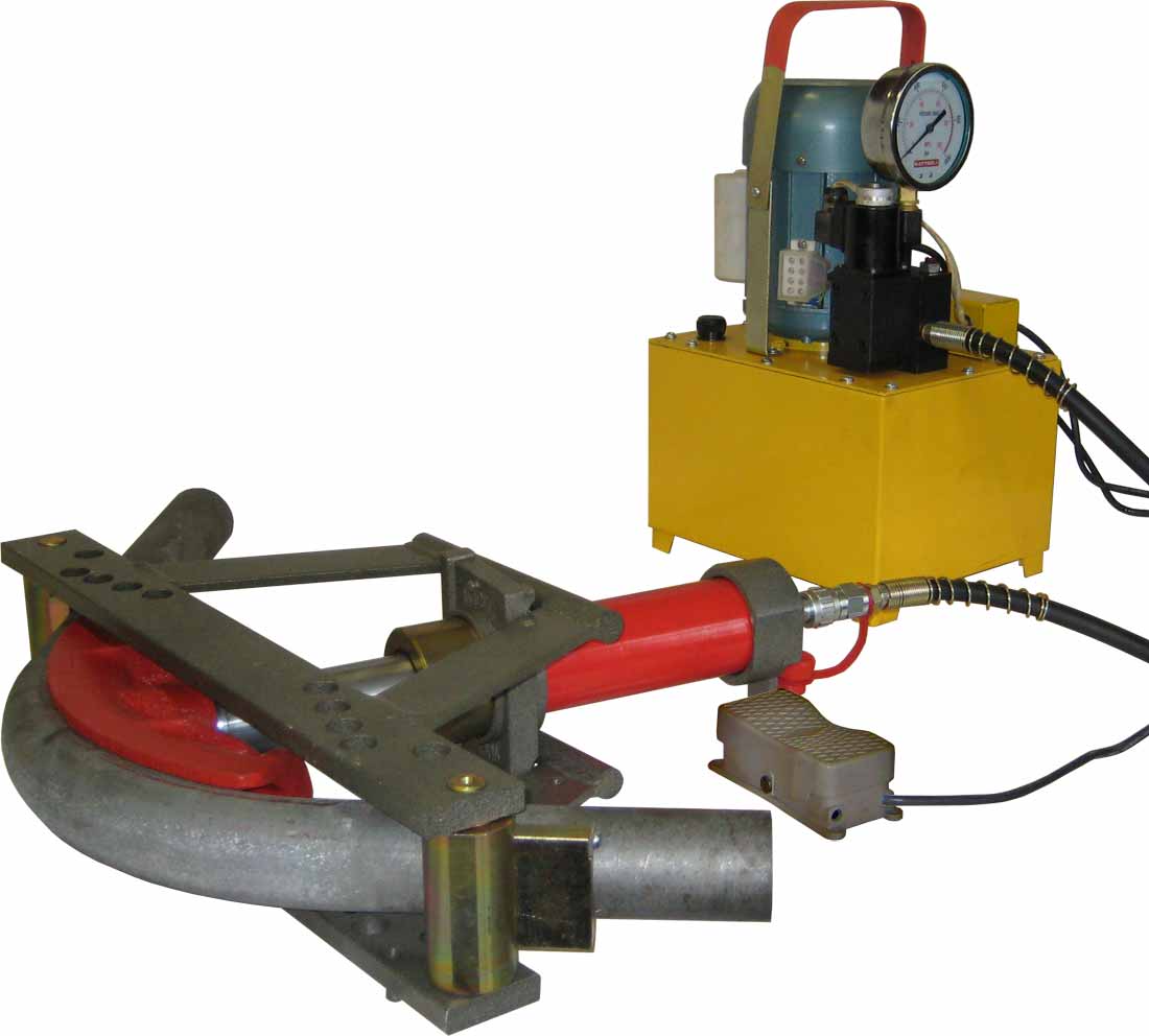Трубогиб гидравлический переносной предназначен для гибки водо-газопроводных труб по ГОСТ 3262-75, а также проката круглого сечения, прочностные характеристики которого не превышают характеристик трубы 2" (условный проход 50мм).