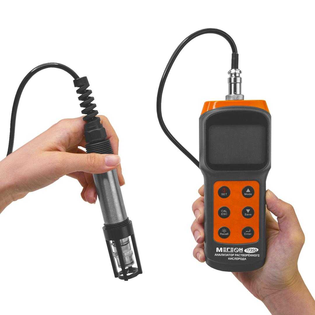 МЕГЕОН 17350 – это портативный анализатор растворённого кислорода с функцией измерения температуры. Измеряет температуру и содержание растворенного кислорода в воде (питьевой, сточной, промышленной, природной), растворах и других водных средах в технологических процессах, в биотехнологии, в пищевой и химической промышленности, сельском хозяйстве и при экологическом мониторинге. Амперометрический принцип основан на измерении тока между электродами в электродной системе вследствие протекания на рабочем электроде электрохимической реакции с участием кислорода, поступающего в ячейку из анализируемого раствора через газопроницаемую мембрану. Сила тока зависит от содержания кислорода.. Широко применяется в промышленности, электротехнике и сельском хозяйстве, медицине, пищевой промышленности, контроле качества питьевой воды и т.д. Компактные размеры в сочетании с простотой использования делают его незаменимым там, где необходимо проводить измерения в промышленности и исследовательской сфере.