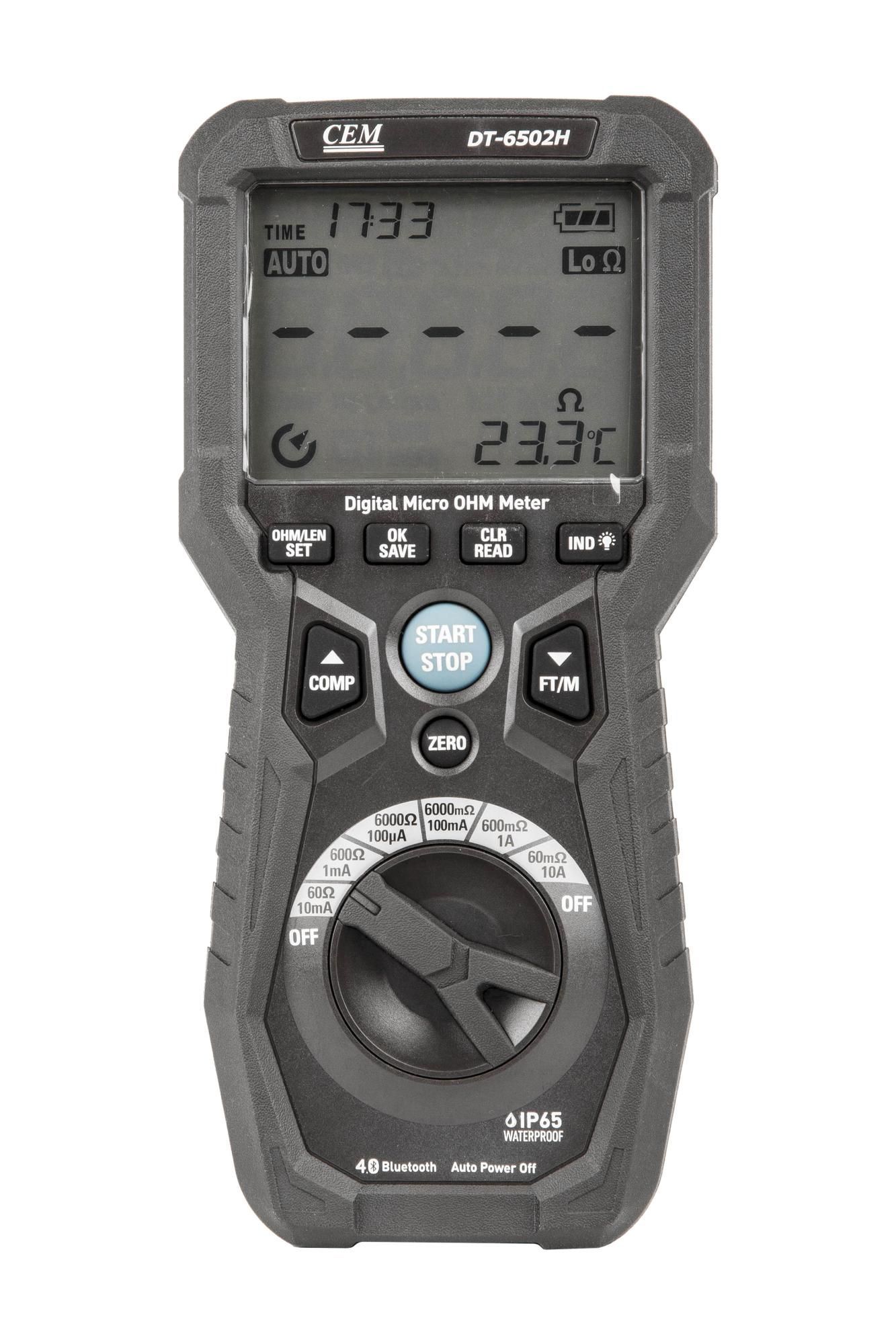 Цифровой микроомметр DT-6502H — портативный измерительный прибор, предназначенный для измерения следующих параметров: время, сопротивление, температура и длина.