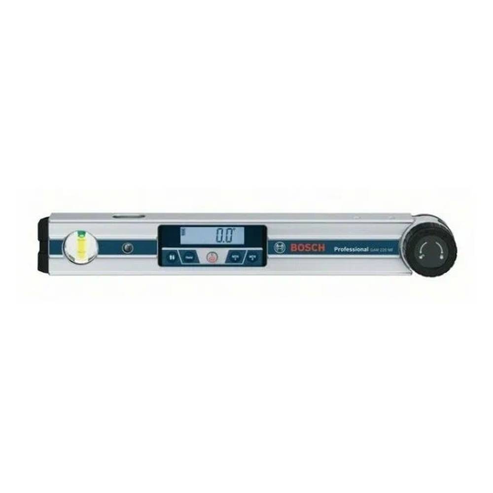 Цифровой угломер Bosch GAM 220 MF Professional предназначен для линейных измерений и построения чертежей. Длина прибора 40 см позволяет точно вычислить параметры углов. Инструмент работает от 4 батареек 1,5 В типа АА.