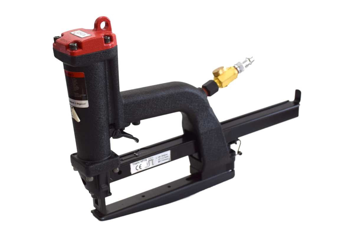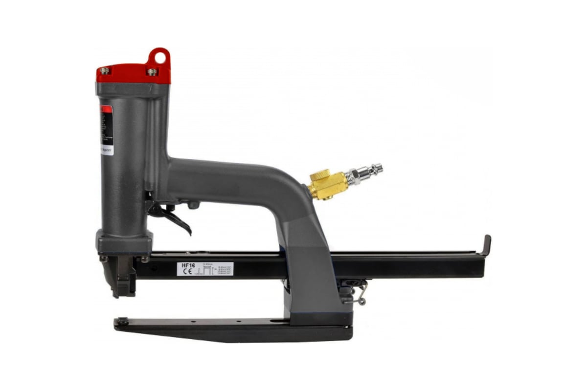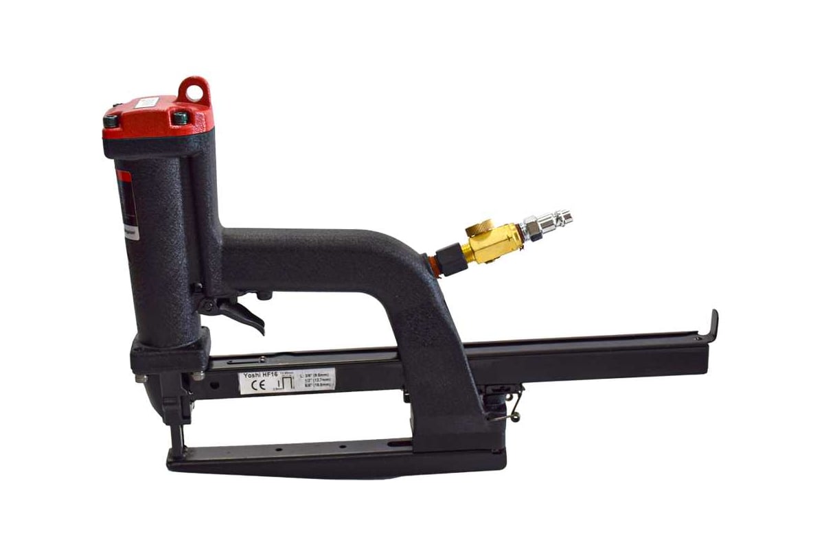Пневматический степлер Yoshi HF16 — это специализированное решение для сшивания многослойного картона и упаковочных материалов на производстве. Инструмент работает со скобами типа HF и оснащён прямой наковальней, что делает его особенно эффективным для формирования и закрытия гофрокоробов различных размеров. Возможность установки изогнутой лапки расширяет функциональность устройства, позволяя применять его и для нестандартных задач. Увеличенный магазин снижает частоту дозаправки, а кронштейн для подвеса на балансир облегчает длительную эксплуатацию.