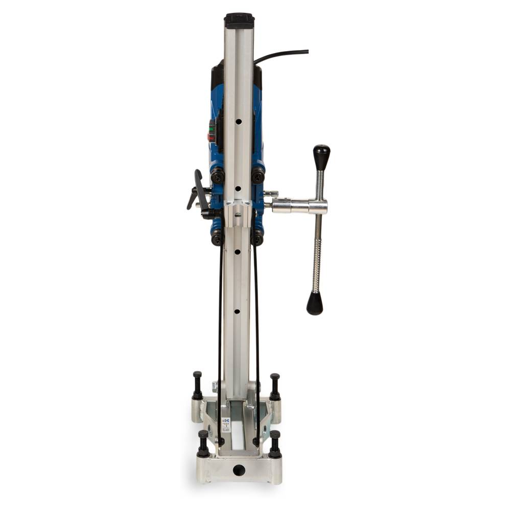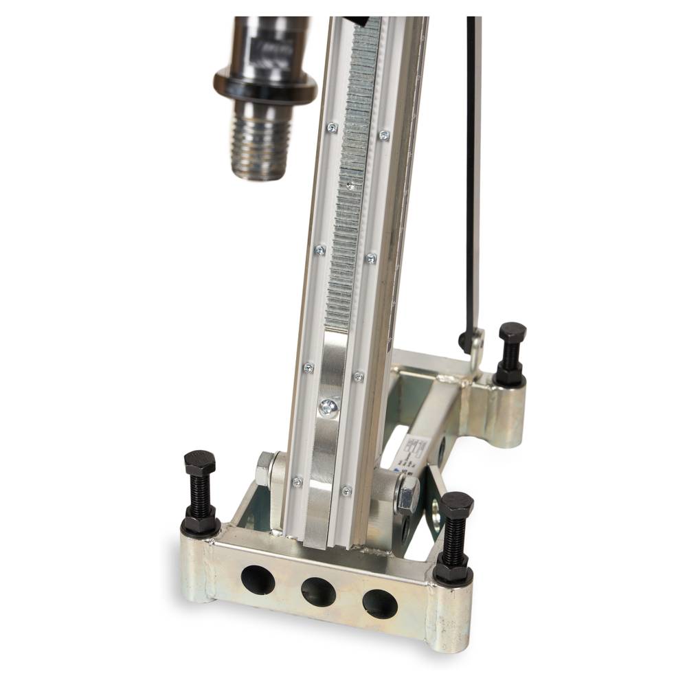 Штатив обладает быстрой и лёгкой сменой угла наклона, что даёт вам гибкость в работе. Ролики на каретке обеспечивают точное и плавное перемещение двигателя для аккуратного бурения. Мотор крепится к штативу с помощью быстросъёмной пластины, что упрощает сборку и разборку.