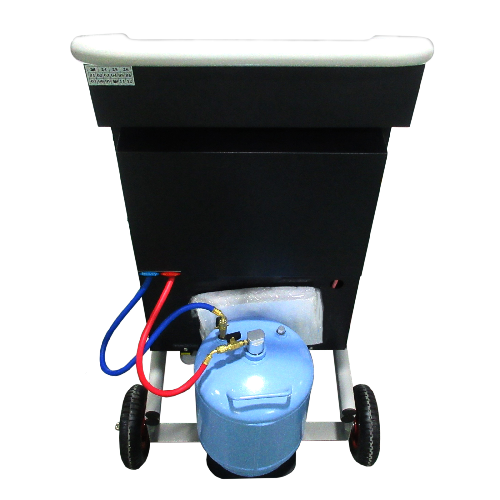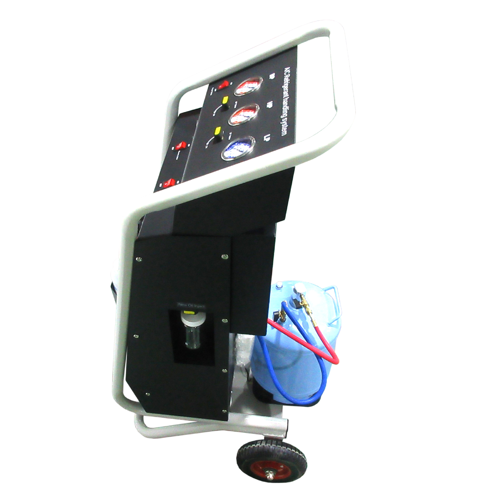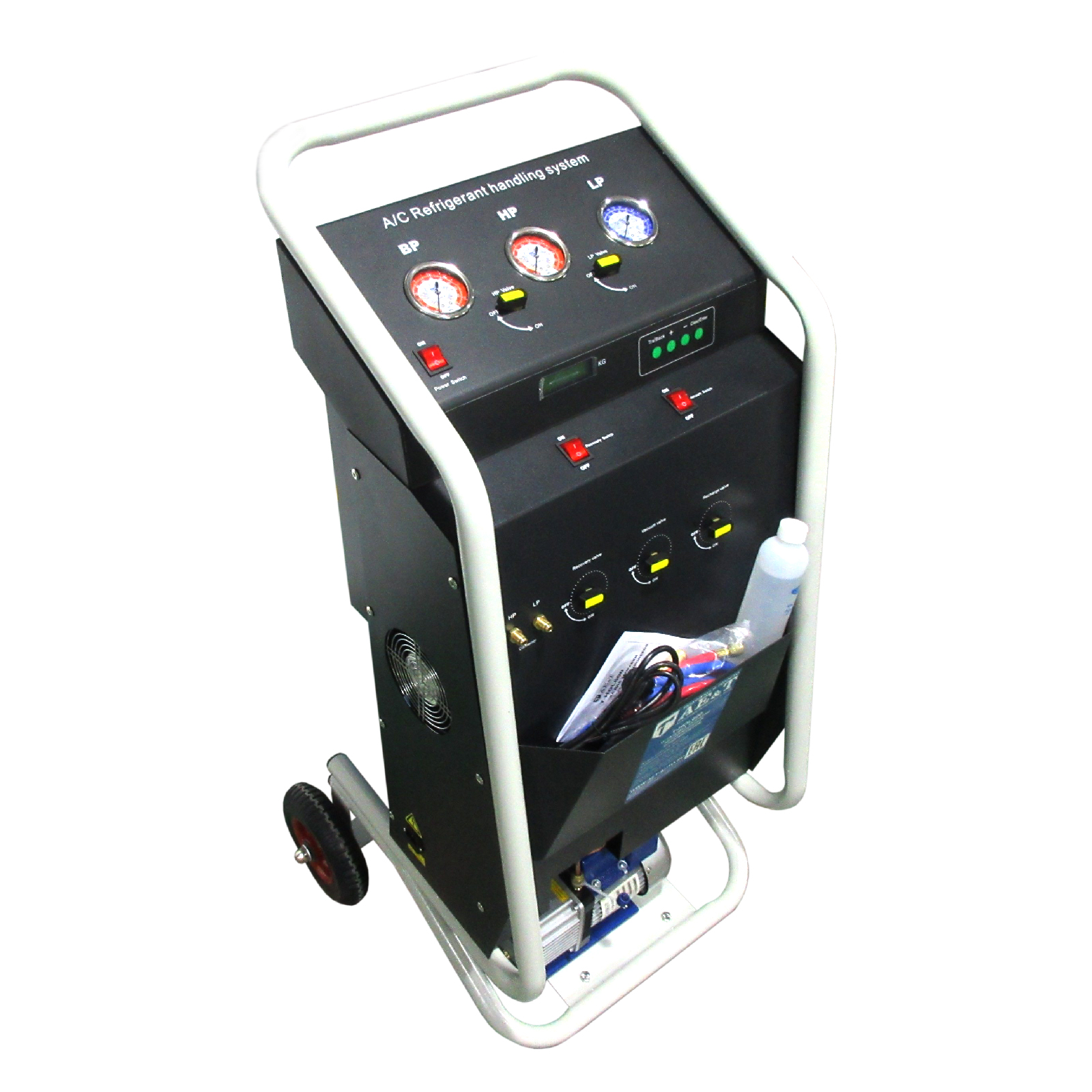 Станция гарантирует безопасную работу с системами кондиционирования. Встроенные электронные весы препятствуют переполнению бака, а интуитивно понятная панель управления оборудована тремя манометрами для точного контроля процесса от и до.