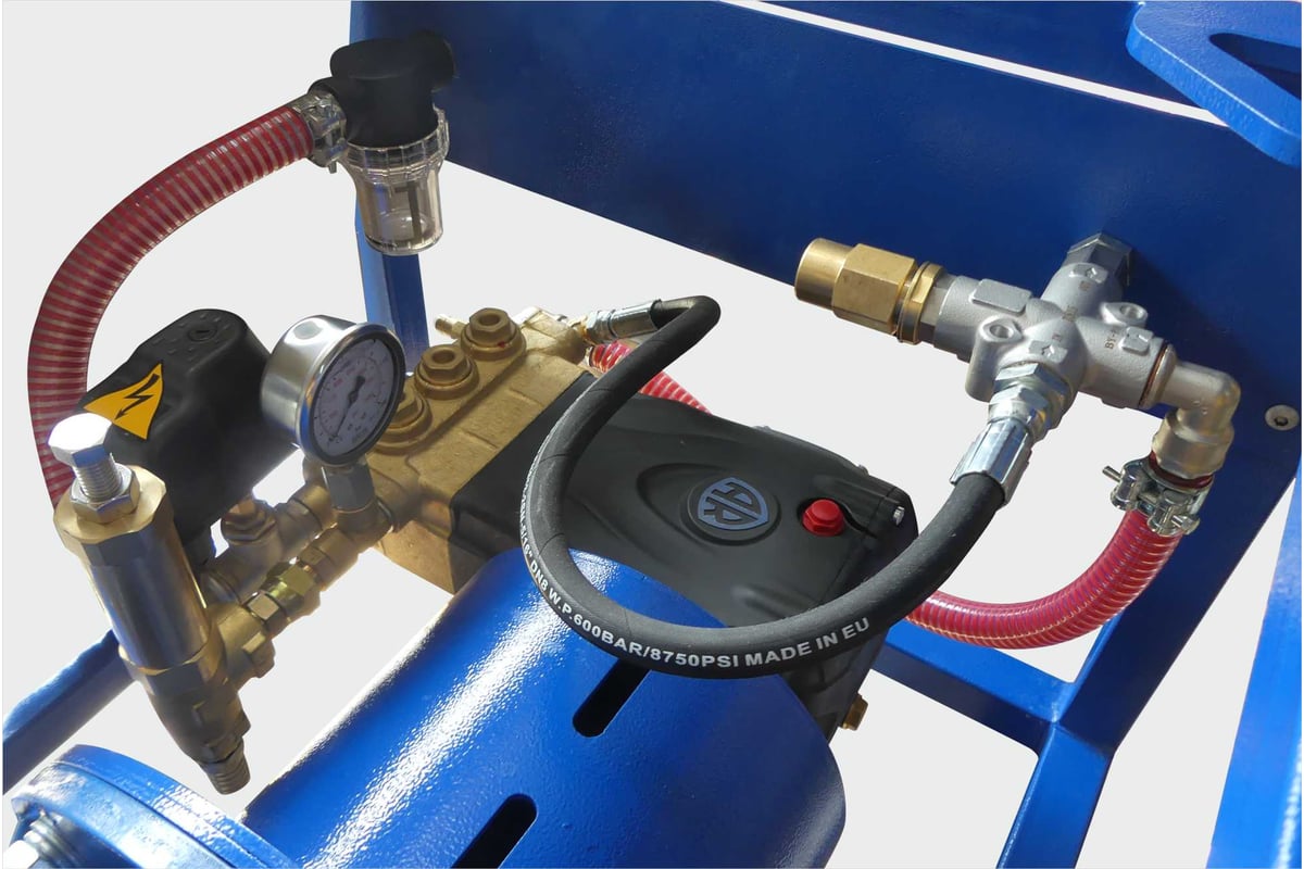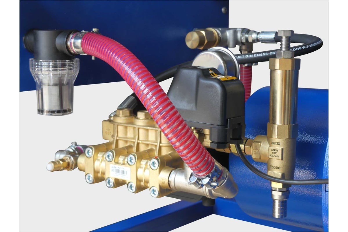Он обеспечивает высокое давление в 500 бар и производительность до 900 л/ч, что позволяет быстро и эффективно очищать различные поверхности от ржавчины, старой краски и других сложных загрязнений.