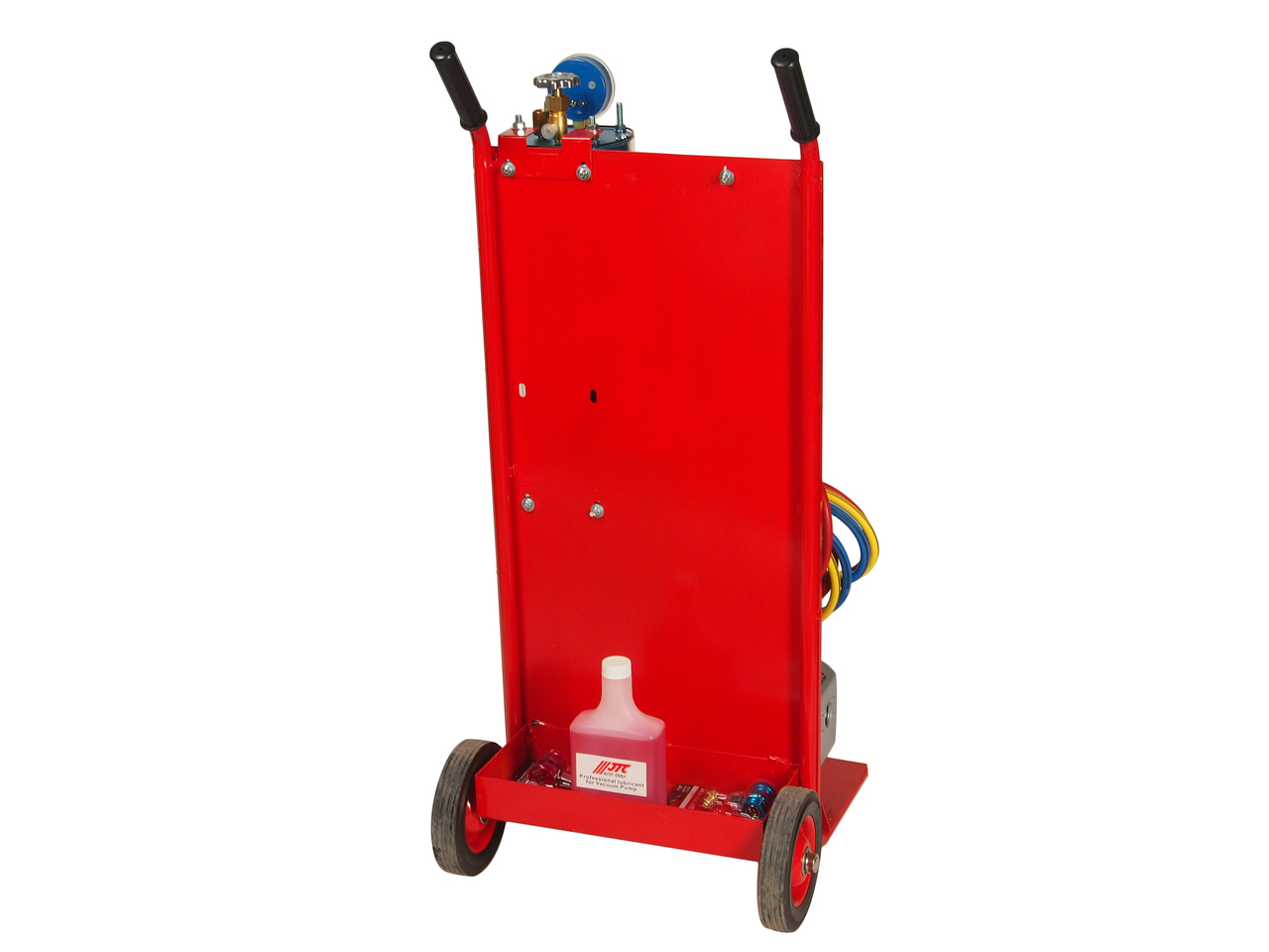 Устройство для заправки автокондиционера JTC-1105, включающее: соединители быстросъемные (JTC-1107) для линий высокого (красный) и низкого давления (синий) - по 1 шт. каждого.