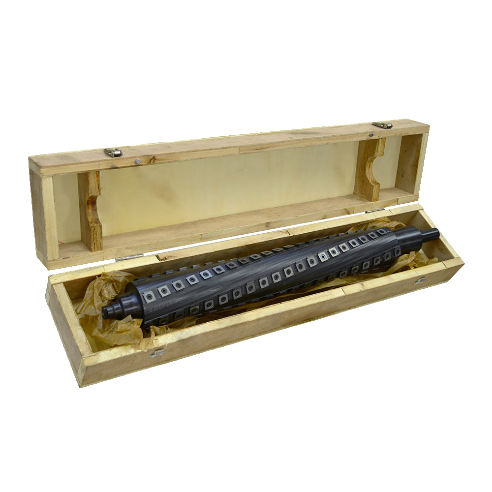 Вал строгальный Helical- предназначен для установки на рейсмусовый станок BELMASH P500RB. Применяется вместо стандартного режущего барабана (вала) из базовой поставки станка. Вставки заточены с четырех сторон, их можно переворачивать при необходимости. Они не подлежат повторной заточке, но возможна замена после затупления со всех сторон. В результате и срок службы и чистота обработки у валов Helical существенно больше, чем у стандартного вала с 3-мя или 4-мя ножами.