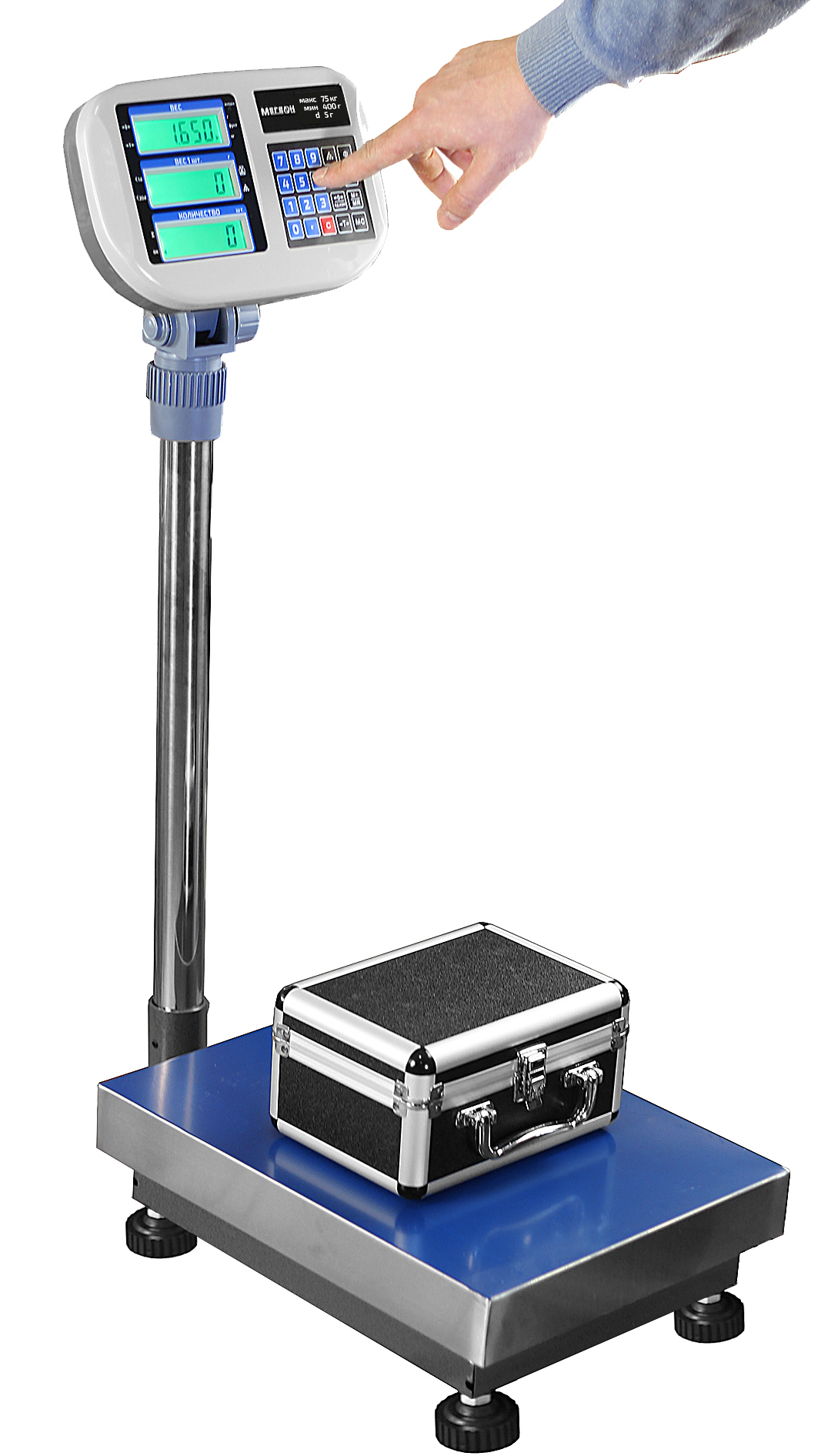 МЕГЕОН 50375K - новинка в модельном ряду напольных весов с электронно-цифровым управлением. Диапазон измерения представленной модели позволяет проводить взвешивание продукции от 5 грамм до 75 килограмм. Функциональные способности выгодно отличаются от большинства подобных товаров имеющихся в продаже. К преимуществам можно отнести: подсчёт количества объектов на грузовой платформе, их суммирование и количественный учёт. Также имеются функции весового контроля, расчёт среднего веса и возможность предварительной установки массы. Приятным дополнением является наличие сервисных настроек и калибровки, не требующей специальных навыков. Все значения отображаются на трёх ЖК- дисплеях с яркими светодиодными подсветками каждого экрана. Автономность работы обеспечивает встроенная аккумуляторная батарея напряжением 6 В и ёмкостью 4,5 Ач. Изделие по достоинству оценят работники предприятий общественного питания, торговых организаций, почты, различных видов производства, сельского хозяйства и других отраслей.