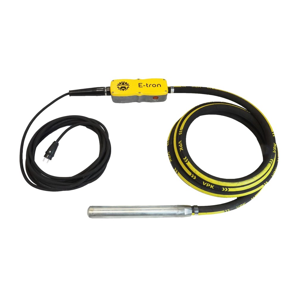 Вибратор глубинный высокочастотный VPK E-tron 36 5м (12010012699) со встроенным преобразователем для уплотнения и равномерного распределения бетона в укладке на стройплощадках, а также на производстве ЖБИ. Высокая степень уплотнения обеспечивается за счет мощного, надежного электродвигателя, высококлассных подшипников и эксцентрика, находящихся в вибробулаве.