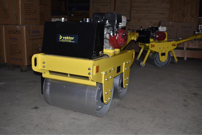 Ручной виброкаток Vektor VRDR-600 — самоходная машина весом 483 кг с двумя вальцами. Работает на топливном двигателе, управляется одним пешим оператором.