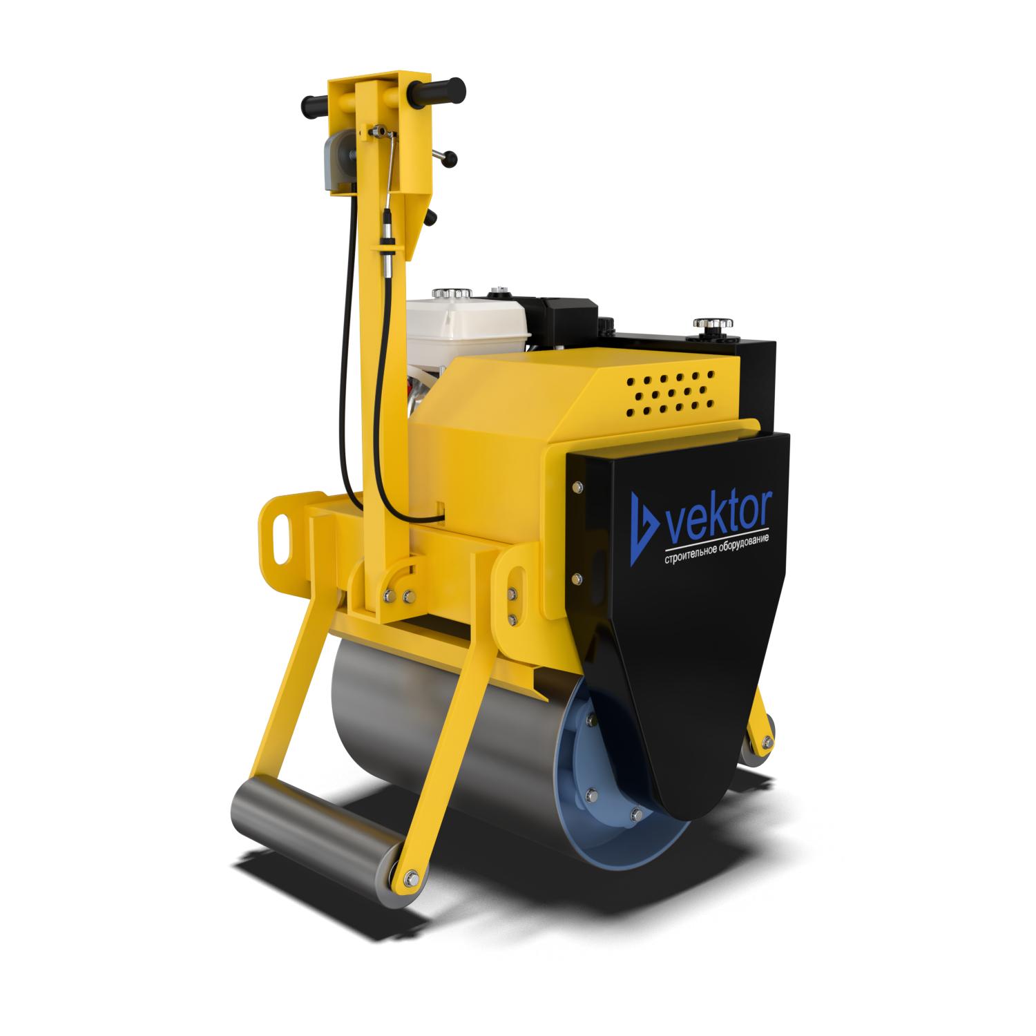 Ручной виброкаток Vektor VR-600 — самоходная машина весом 308 кг с одним вальцом. Работает на топливном двигателе, управляется одним пешим оператором.