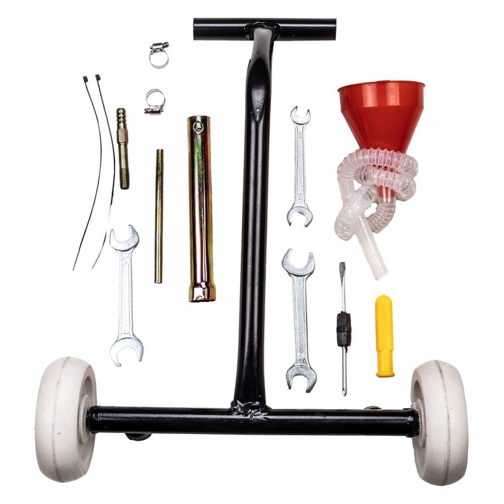 С помощью комплектной подкатной тележки с колёсами устройство легко переводится в походное положение для транспортировки к месту работы, хранения или погрузки.