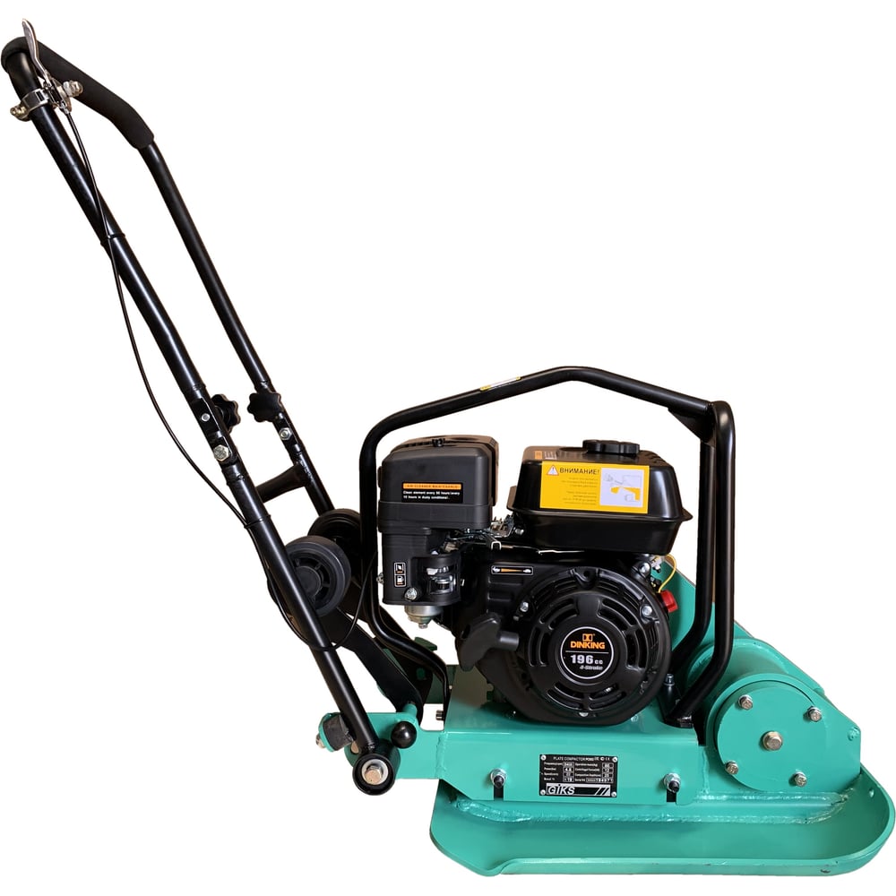 Виброплита GIKS 80 кг, двигатель Dinking G200F 6л.с., колеса PC90D применяется для проведения уплотнительных работ на объектах дорожного строительства. Рычаг управления дроссельной заслонкой расположен на рабочей рукоятке в максимальной доступности для оператора. Наличие колес обеспечивает удобство перемещения по площадке.