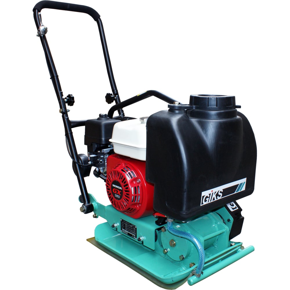 Виброплита GIKS 85 кг Honda GX160 5.5 л.с. PC90HSET оборудована мощным и производительным бензиновым двигателем Honda GX160 4000 Вт. Рычаг управления дроссельной заслонкой расположен на рабочей рукоятке аппарата для удобства пользователя. Наличие бака для воды и системы подачи жидкости в уплотняемую зону обеспечивает улучшенное качество обработки.