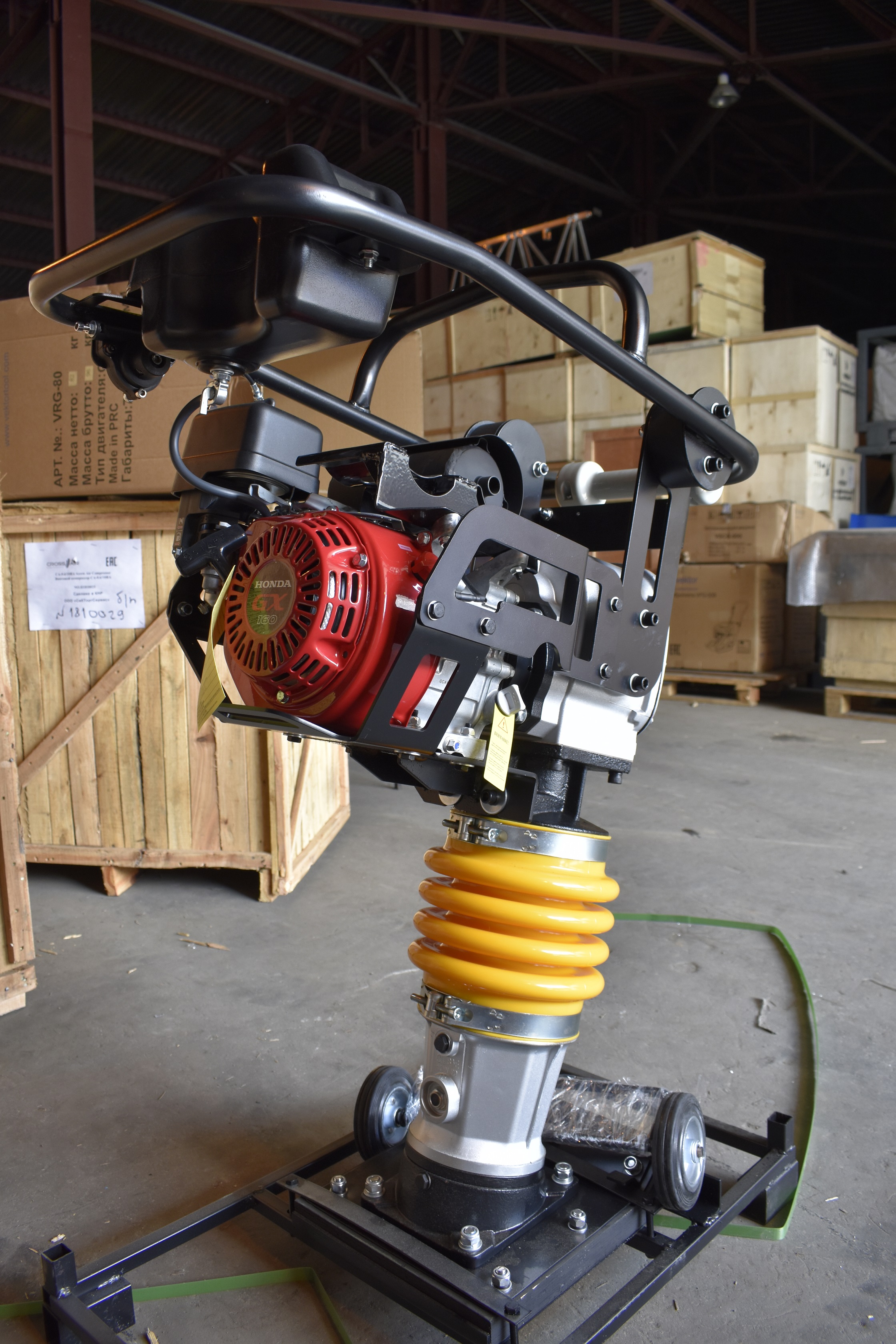 У трамбовки VRG-80 бензиновый двигатель, поэтому она мобильна и автономна. Однако с ней можно работать только на открытых площадках и в хорошо проветриваемых сооружениях, поскольку от работы двигателя выделяются токсичные выхлопные газы.
