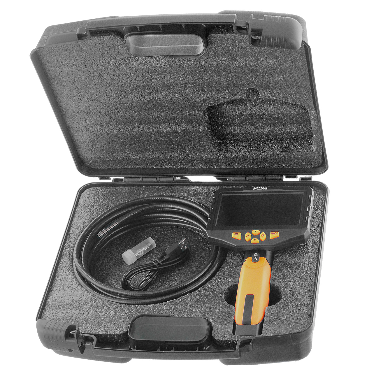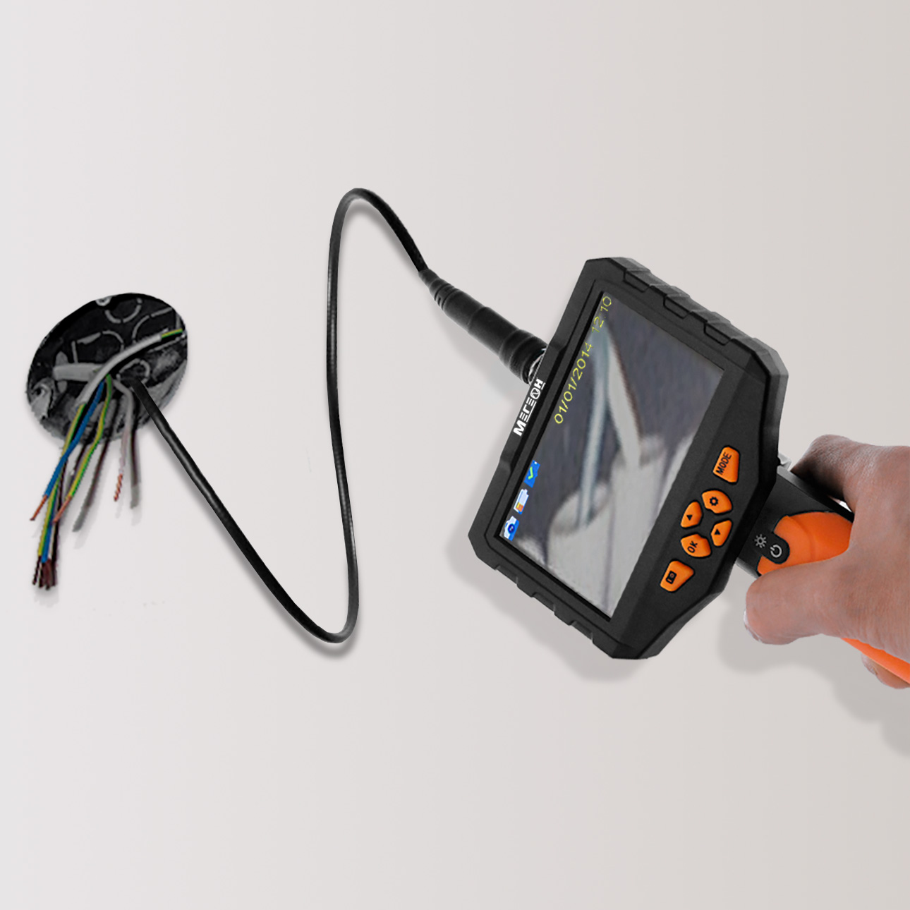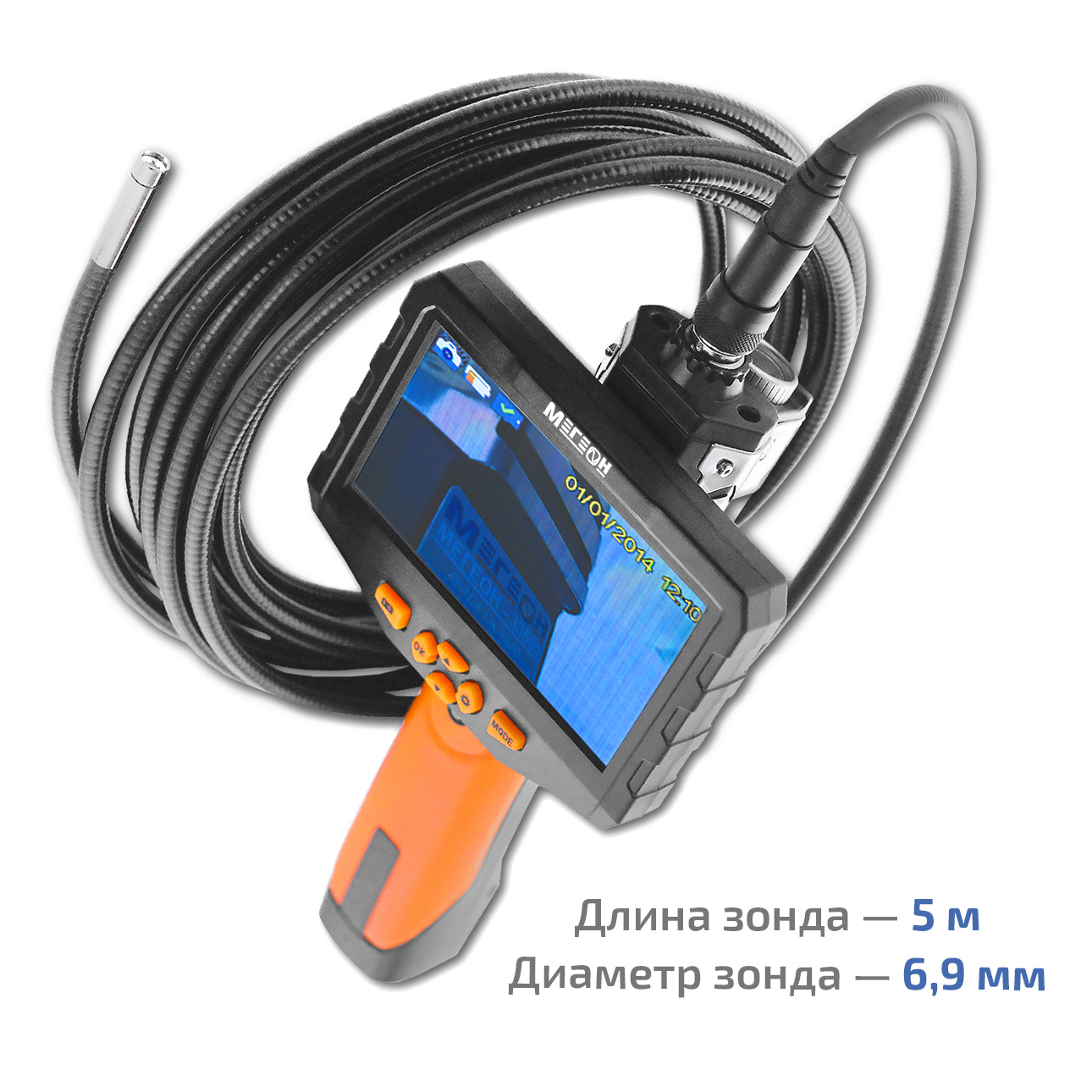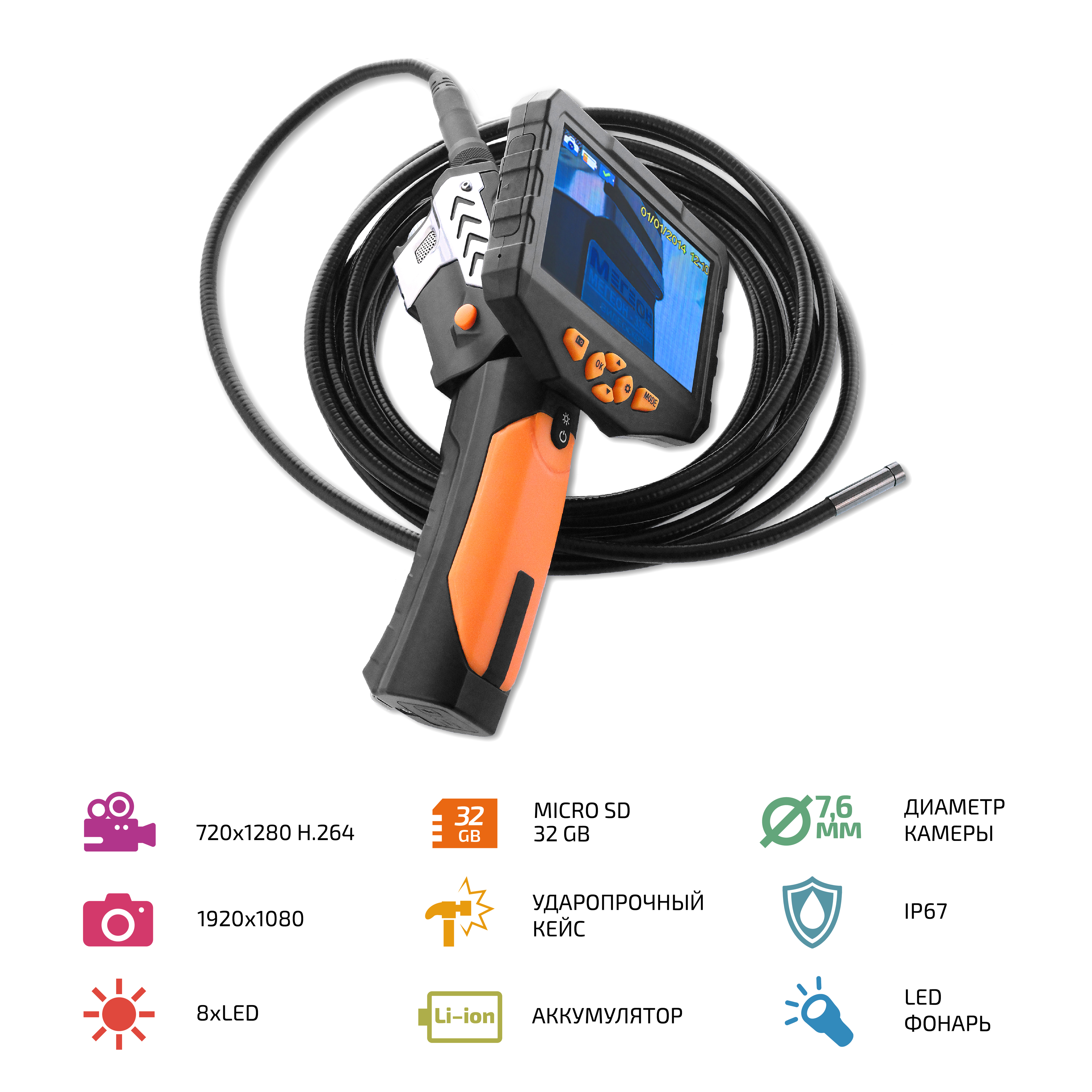 Торговая марка МЕГЕОН представляет Вашему вниманию новинку, а именно, цифровой эндоскоп МЕГЕОН 33500, призванный упростить решение задач различной сложности во многих промышленных отраслях. Данное устройство представляет собой компактный прибор для наблюдения и записи видеоизображения. Эндоскоп также позволяет производить захват текущего кадра, то есть сохранять изображение (фото). Полученные данные могут быть сохранены в формате MOV (видео) с максимальным разрешением 1 Мп. Поддержка линейной интерполяции позволяет получать изображение высокого качества.Прибор оснащен цветным ЖК-дисплеем диагональю 5'. При необходимости, дисплей может быть отсоединен от основного блока, позволяя удаленно просматривать и управлять камерой. Длина зонда составляет 5м, а диаметр равен 6,9 мм. Использование современных компонентов позволяет достичь впечатляющих показателей точности и обеспечивает длительный срок службы прибора. Из отличительных особенностей необходимо отметить регулируемый угол наклона дисплея и ручки эндоскопа. Корпус видеоскопа имеет элементы из нержавеющей стали, что придает корпусу прибора дополнительную жесткость и прочность. Камера эндоскопа имеет шесть ярких светодиодов с плавной регулировкой яркости, которые обеспечивают удобную работу с прибором даже в неосвещенных помещениях. Корпус также имеет интегрированную подсветку, которая обеспечивает превосходную видимость перед прибором независимо от окружающего освещения.