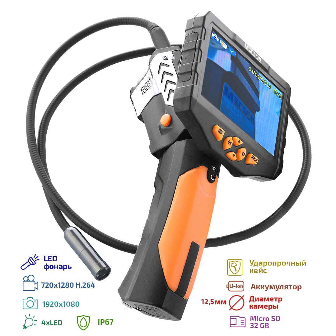 МЕГЕОН 33500-1125 - новинка в модельном ряду цифровых видеоскопов, предназначенный для решения задач в быту и промышленности. Эндоскоп представляет собой устройство для исследования и осмотра скрытых от глаза полостей с возможностью сохранения видеоизображения со звуком на встроенный носитель MicroSDHC 32Гб. Помимо этого предусмотрено получение цветных изображений с помощью фотографий. Большой ЖК-дисплей с разрешением 1280х720 и диагональю 5' отчётливо отобразит всё происходящее перед камерой. Зонд диаметром 6,9 мм и длиной 1 метр имеет полужёсткую конструкцию. Подсветка оснащена шестью яркими светодиодами со ступенчатой регулировкой яркости, которые обеспечивают работу в условиях полного отсутствия освещения. Дополнительно в корпусе предусмотрена подсветка с высокой интенсивности свечения, которая с лёгкость заменит фонарик. Преимущества изделия по достоинству смогут оценить профессионалы и любители.