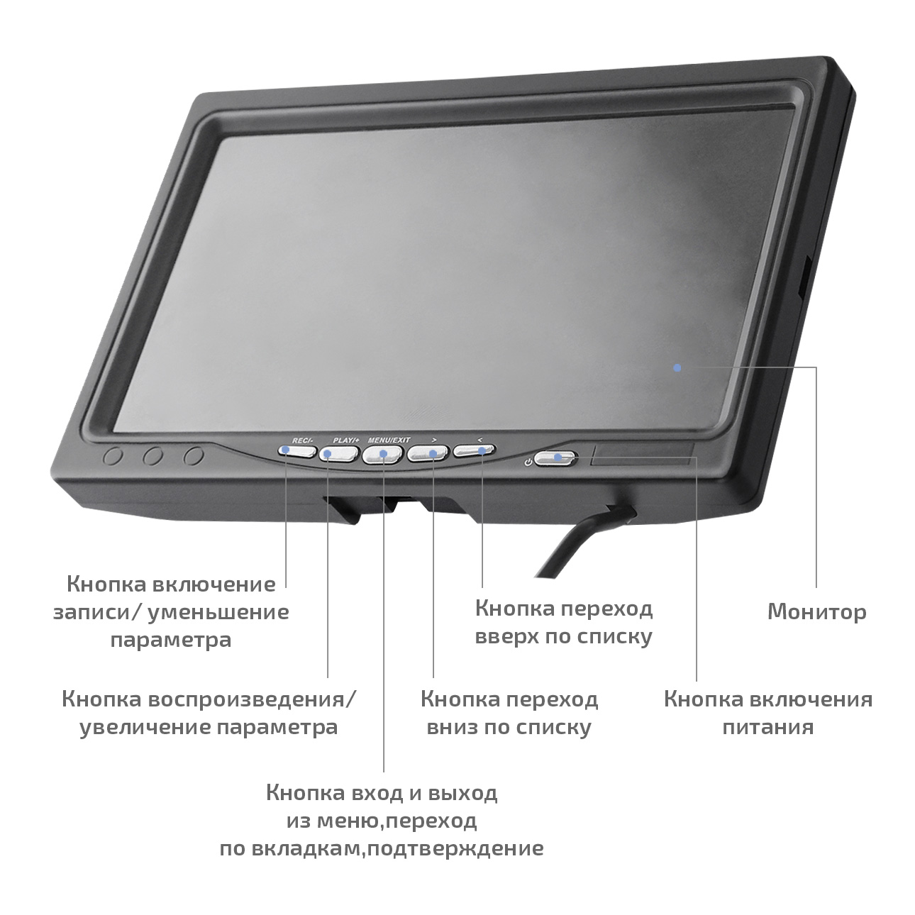 - 7" ЖК-дисплей с антибликовыми козырьками