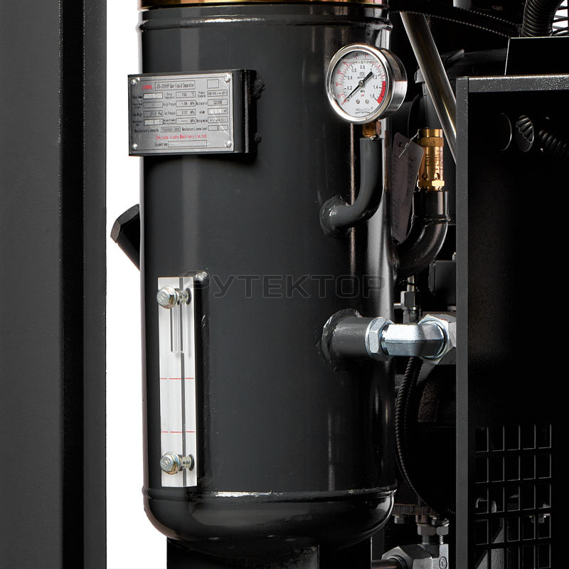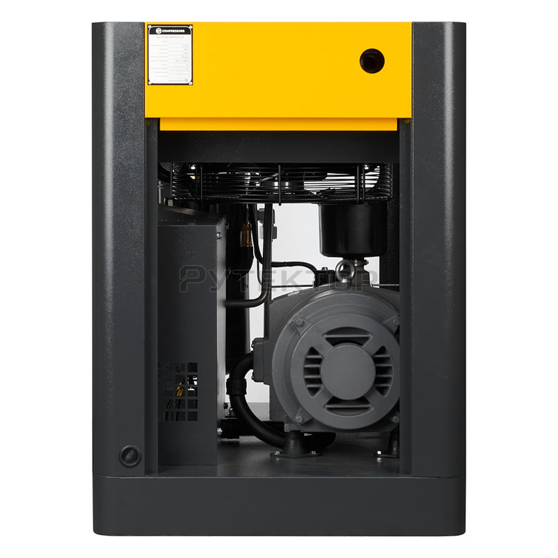 Низкий уровень шума также достигается применением шумопоглощающих панелей, установкой электродвигателя и винтового блока на виброопорах.