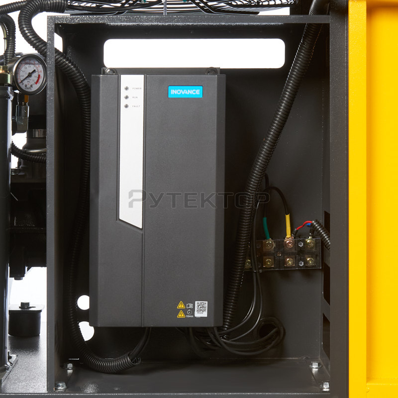 Низкий уровень шума также достигается применением шумопоглощающих панелей, установкой электродвигателя и винтового блока на виброопорах.