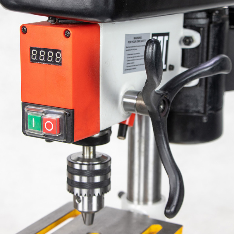 Модель обладает рядом особенностей. Например: цифровой указатель оборотов шпинделя для точного контроля скорости вращения и ручной механический вариатор ременной передачи. Станок работает от обычной бытовой сети 230 В и имеет небольшие размеры, что позволяет устанавливать его в любом удобном месте. Его потребляемая мощность составляет всего 450 Вт, что делает его экономичным в использовании.