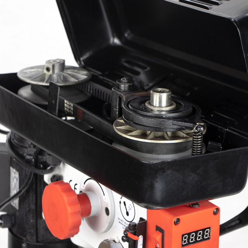 B-1313B/230 оснащён функциями поворота, подъёма и наклона стола, а также поворота шпиндельной головки на колонне. Это обеспечивает удобство работы и расширяет возможности станка.