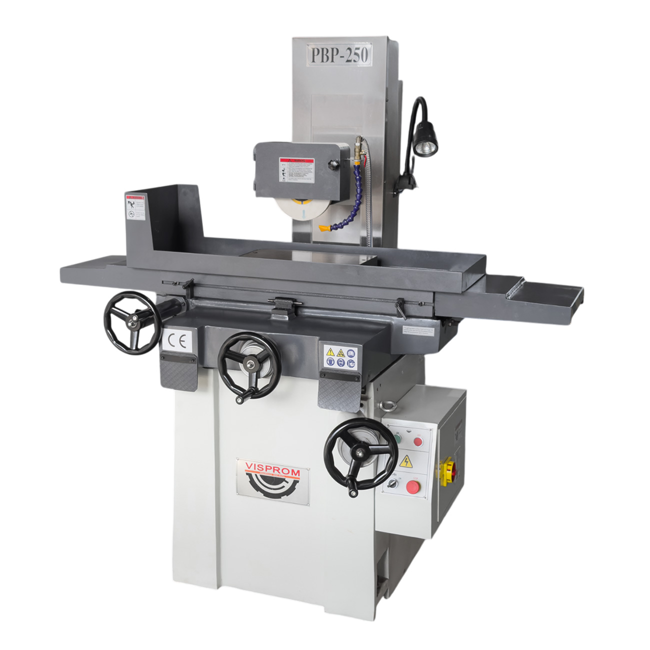 Плоскошлифовальный станок PBP-250 применяется для шлифования плоских поверхностей металлических деталей с помощью периферии шлифовального круга и подходит для мелкосерийного и серийного производства. Его легко можно установить в ремонтном цехе или небольшой мастерской. Простота конструкции и позволяет использовать станок для обучения и подготовки специалистов.