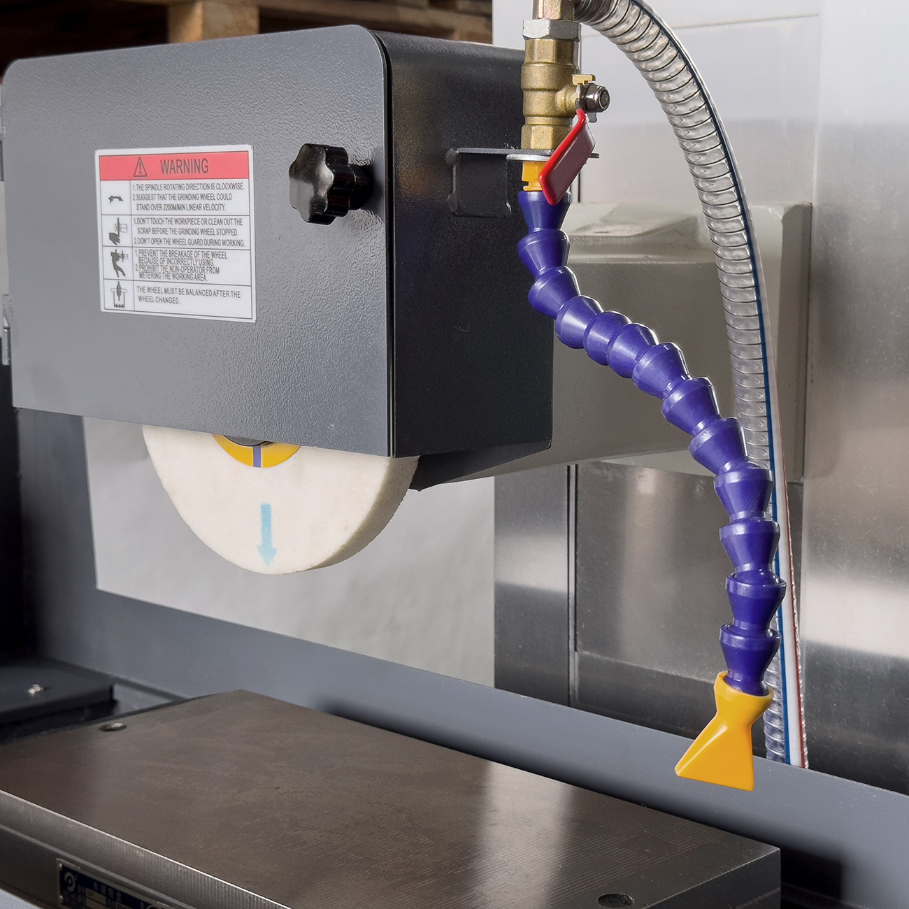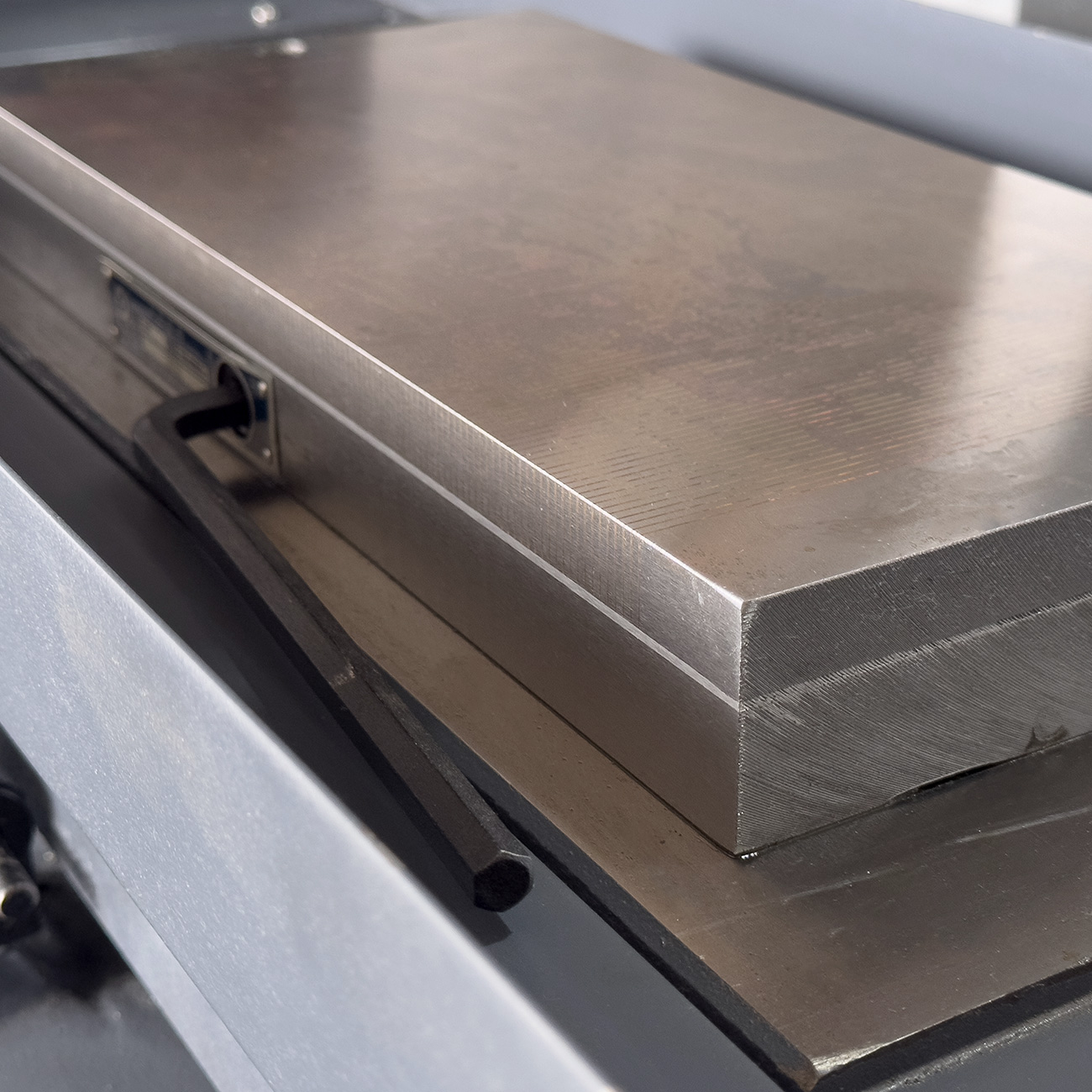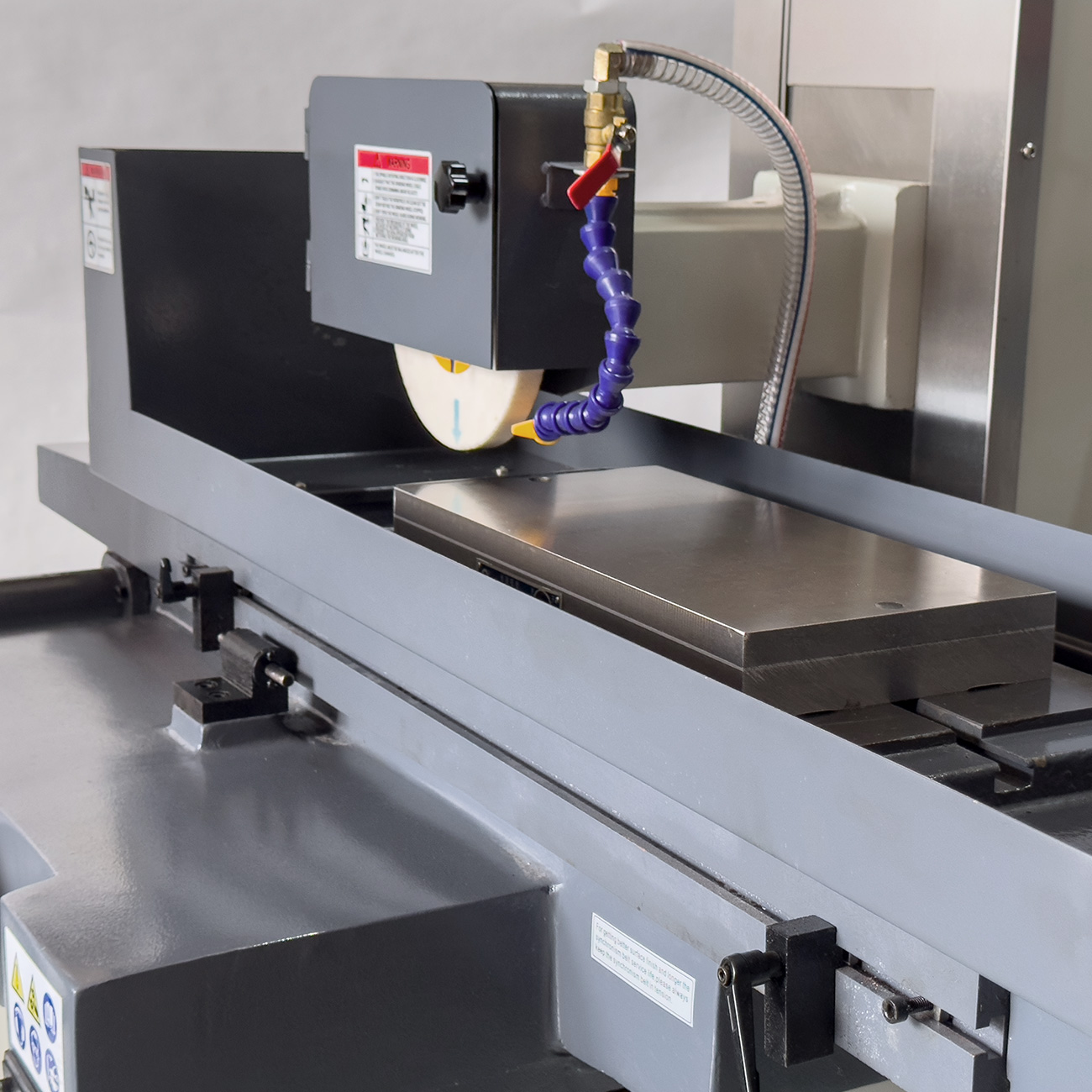 Станок имеет ряд достоинств. Это компактные размеры, простое ручное управление столом и магнитной плитой. ШВП вертикального перемещения шлифовальной головки в соответствии с классом оборудования высокой точности. Автоматическая система смазки направляющих и винтовых пар облегчающая станок в обслуживании. На модели используется замкнутая система охлаждения с отстойником для абразивной пыли.