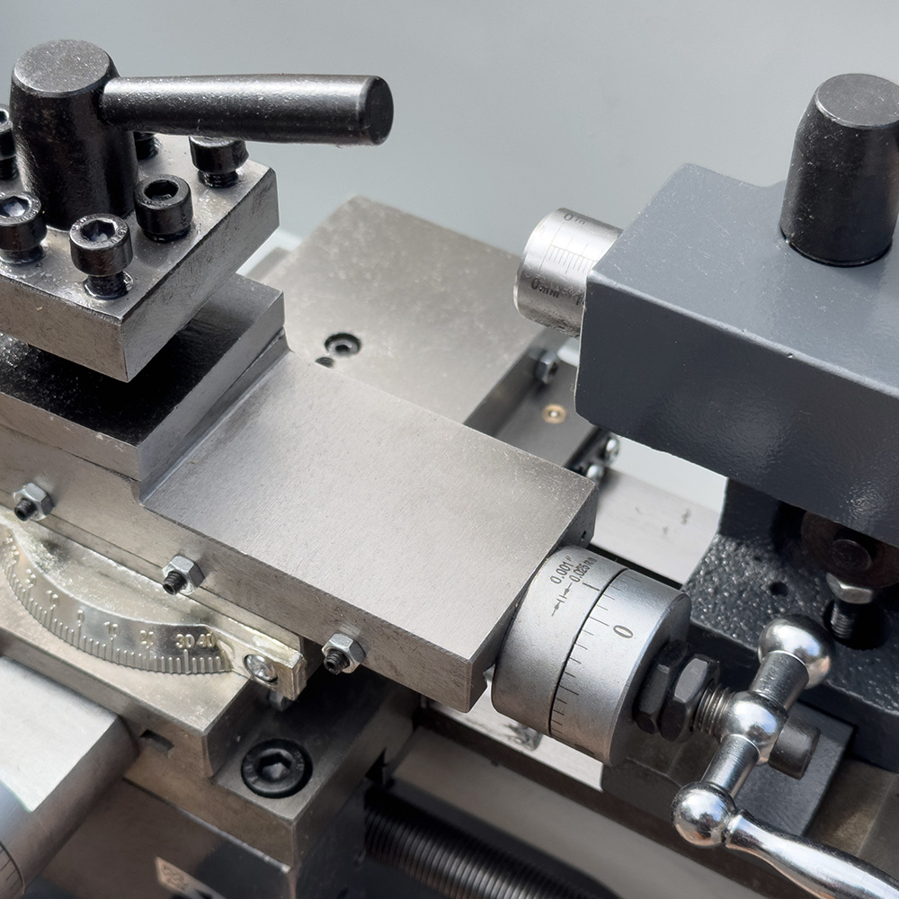 Несмотря на свои компактные размеры, настольный токарный станок имеет широкий диапазон возможностей. Продольная подача позволяет выполнять на станке нарезку метрических резьб и обеспечивает высокую точность и качество обработки. Станок имеет 10 предустановленных метрических резьб с шагом от 0,5 до 2,5 мм и ход поперечного суппорта составляет 65 мм, обеспечивая плавную и точную обработку деталей.