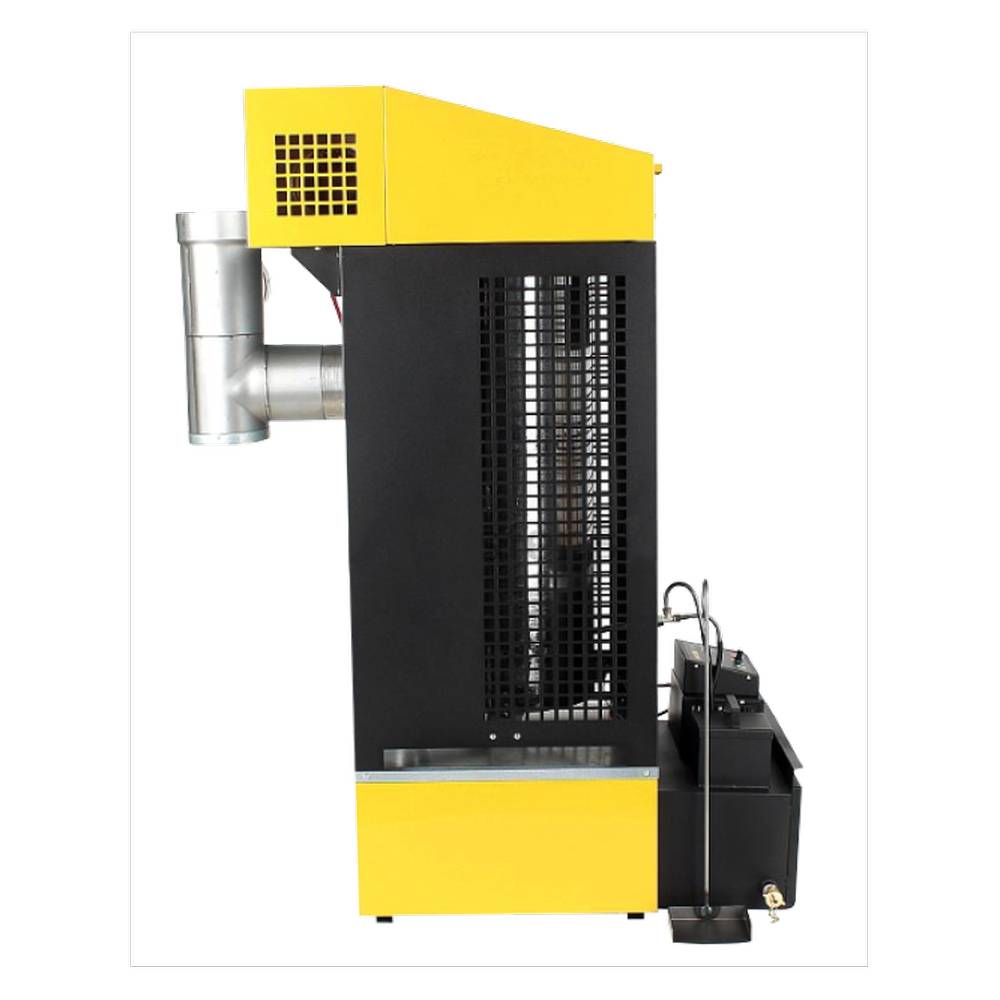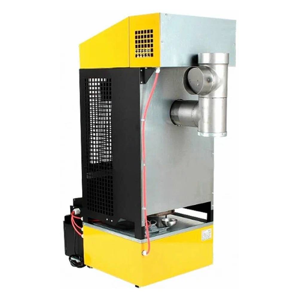 Топливный бак рассчитан на 50 л масла. Регулируемая мощность позволяет выбрать оптимальную температуру. Диаметр для подключения дымохода — 150 мм.