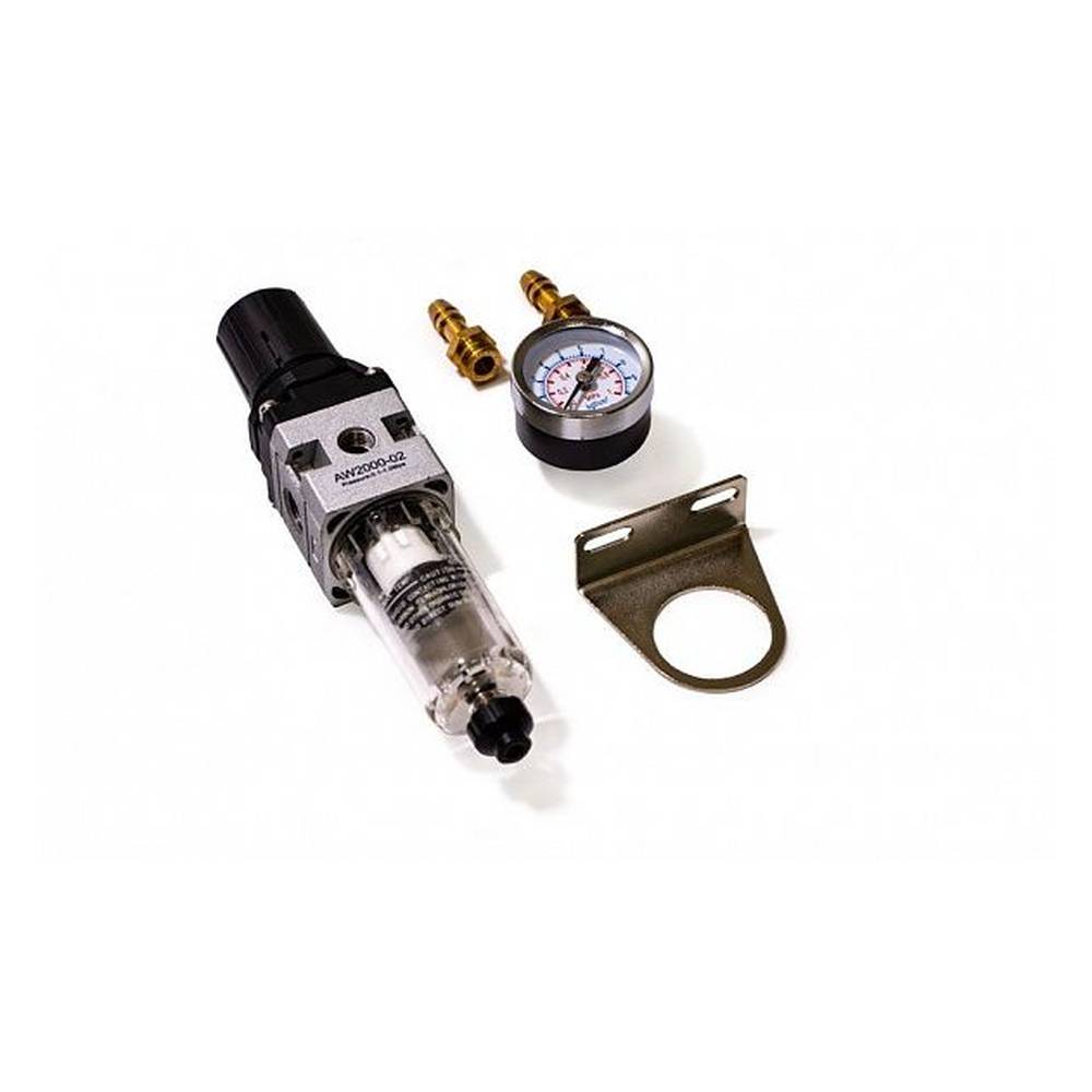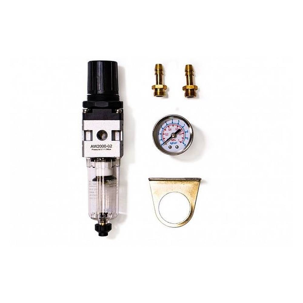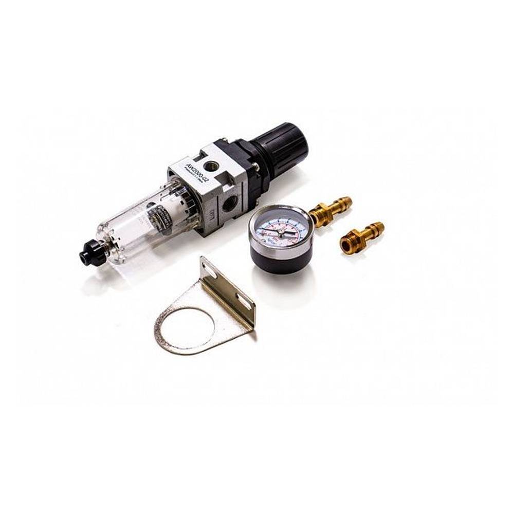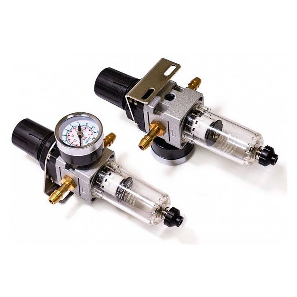 Воздушный фильтр-регулятор предназначен для установки на аппараты плазменной резки. Устройство подготавливает воздух подаваемый компрессором и очищает его от влаги и частиц масла. Фильтр-регулятор оснащён манометром и рукояткой управления давлением.