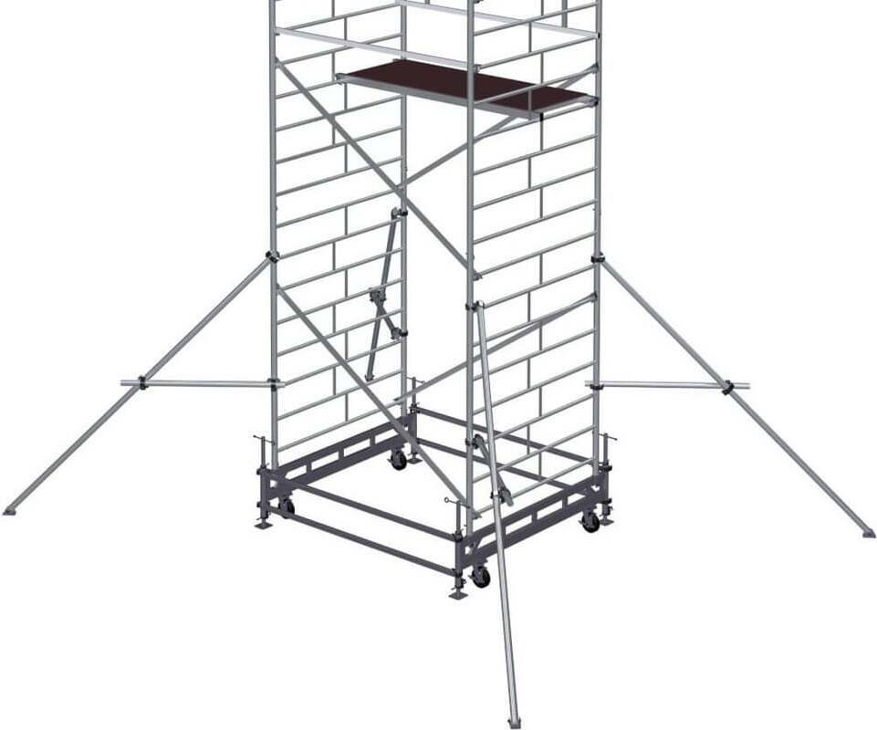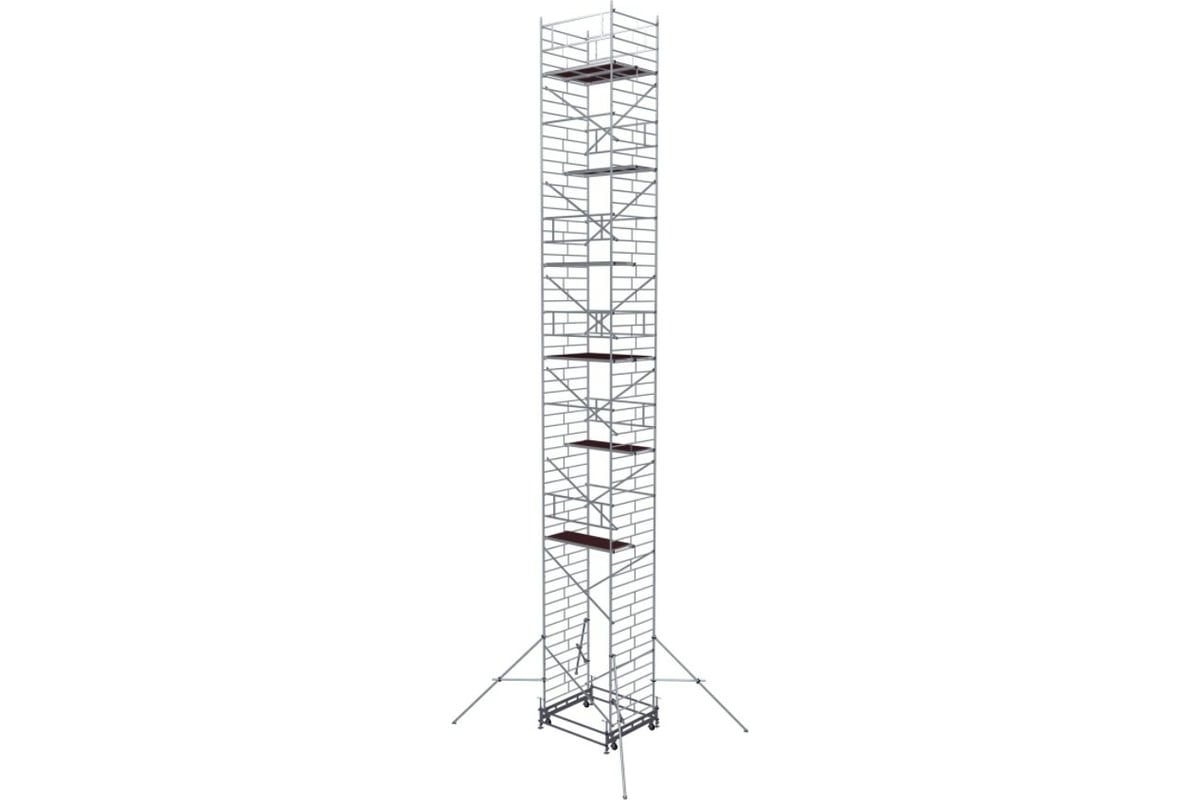 Вышка модульная алюминиевая MEGAL ВМА 1400/16 предназначена для организации рабочего места на высоте с использованием лестничных маршей в строительно-монтажных, ремонтных и прочих работах. Вышка собирается из двухметровых и метровых вертикальных рам. Рамы стыкуются между собой и фиксируются крепежными скобами. Все ступени рам выполнены из рифленого профиля, что обеспечивает безопасный подъем. Используются диагональные и горизонтальные связи (стяжки). Рабочий настил размером 2,0 х 1,4 м с люком. Вышка монтируется на усиленном широком основании. Мобильность вышки достигается за счет поворотных колес со стопорами. Опорная поверхность на домкратах, исключая колеса.