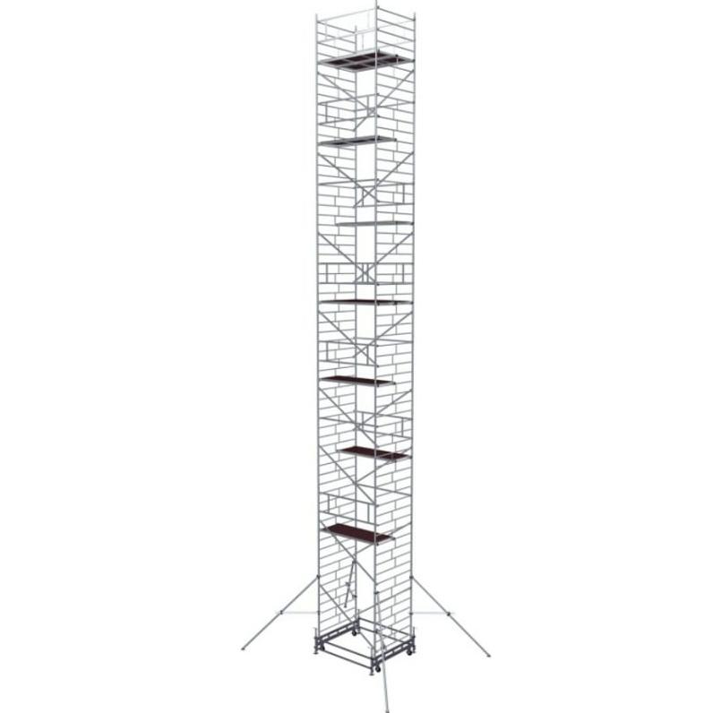 Вышка модульная алюминиевая MEGAL ВМА 1400/17 предназначена для организации рабочего места на высоте с использованием лестничных маршей в строительно-монтажных, ремонтных и прочих работах. Вышка собирается из двухметровых и метровых вертикальных рам. Рамы стыкуются между собой и фиксируются крепежными скобами. Все ступени рам выполнены из рифленого профиля, что обеспечивает безопасный подъем. Используются диагональные и горизонтальные связи (стяжки). Рабочий настил размером 2,0 х 1,4 м с люком. Вышка монтируется на усиленном широком основании. Мобильность вышки достигается за счет поворотных колес со стопорами. Опорная поверхность на домкратах, исключая колеса.