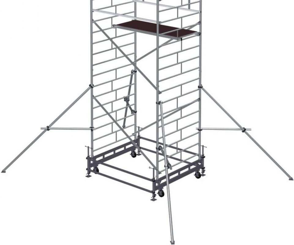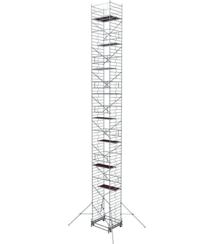Вышка модульная алюминиевая MEGAL ВМА 1400/19 предназначена для организации рабочего места на высоте с использованием лестничных маршей в строительно-монтажных, ремонтных и прочих работах. Вышка собирается из двухметровых и метровых вертикальных рам. Рамы стыкуются между собой и фиксируются крепежными скобами. Все ступени рам выполнены из рифленого профиля, что обеспечивает безопасный подъем. Используются диагональные и горизонтальные связи (стяжки). Рабочий настил размером 2,0 х 1,4 м с люком. Вышка монтируется на усиленном широком основании. Мобильность вышки достигается за счет поворотных колес со стопорами. Опорная поверхность на домкратах, исключая колеса.