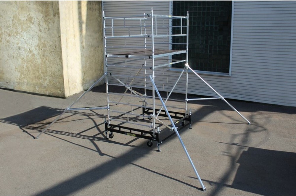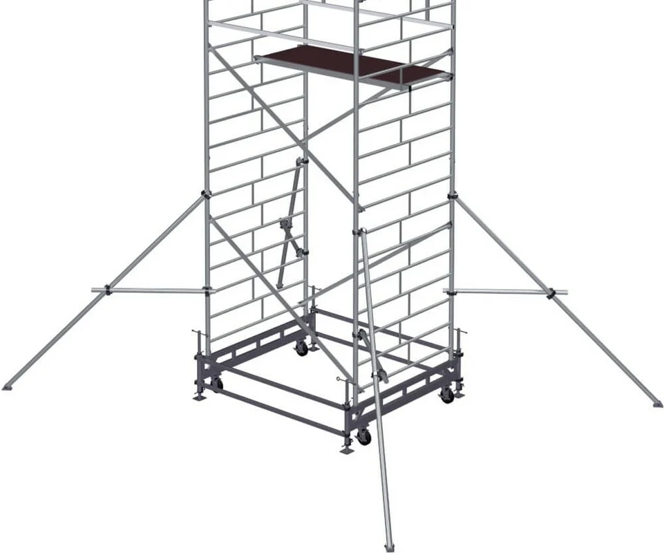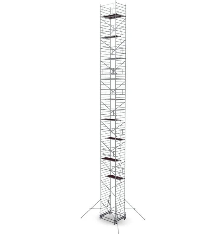Вышка модульная алюминиевая MEGAL ВМА 1400/22 предназначена для организации рабочего места на высоте с использованием лестничных маршей в строительно-монтажных, ремонтных и прочих работах. Вышка собирается из двухметровых и метровых вертикальных рам. Рамы стыкуются между собой и фиксируются крепежными скобами. Все ступени рам выполнены из рифленого профиля, что обеспечивает безопасный подъем. Используются диагональные и горизонтальные связи (стяжки). Рабочий настил размером 2,0 х 1,4 м с люком. Вышка монтируется на усиленном широком основании. Мобильность вышки достигается за счет поворотных колес со стопорами. Опорная поверхность на домкратах, исключая колеса.