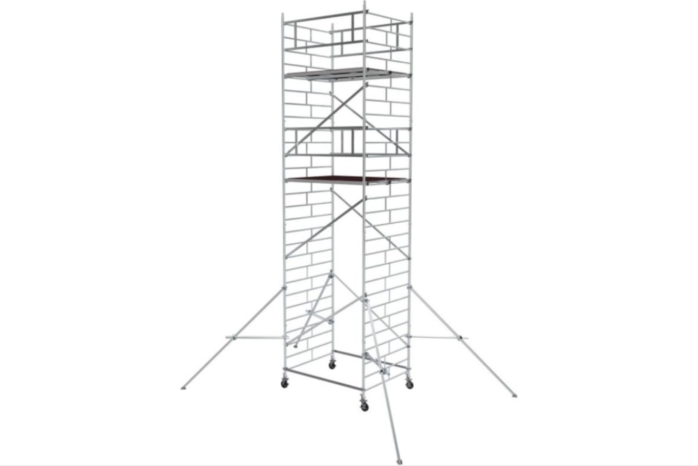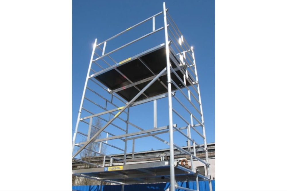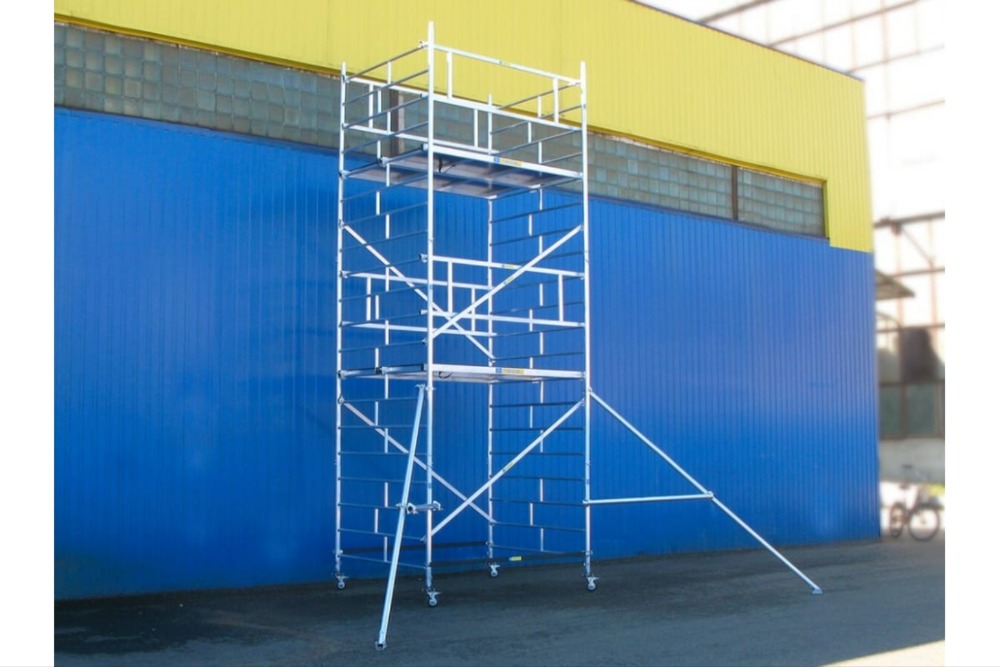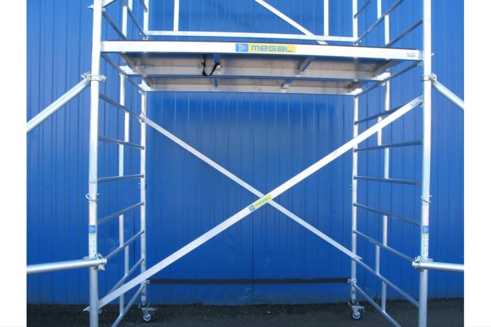Вышка модульная алюминиевая MEGAL ВМА 1400/8 предназначена для организации рабочего места на высоте с использованием лестничных маршей в строительно-монтажных, ремонтных и прочих работах. Вышка собирается из двухметровых и метровых вертикальных рам. Рамы стыкуются между собой и фиксируются крепежными скобами. Все ступени рам выполнены из рифленого профиля, что обеспечивает безопасный подъем. Используются диагональные и горизонтальные связи (стяжки). Рабочий настил размером 2,0 х 1,4 м с люком. Вышка монтируется на компактном основании из стальных стяжек. Мобильность вышки достигается за счет поворотных колес со стопорами.