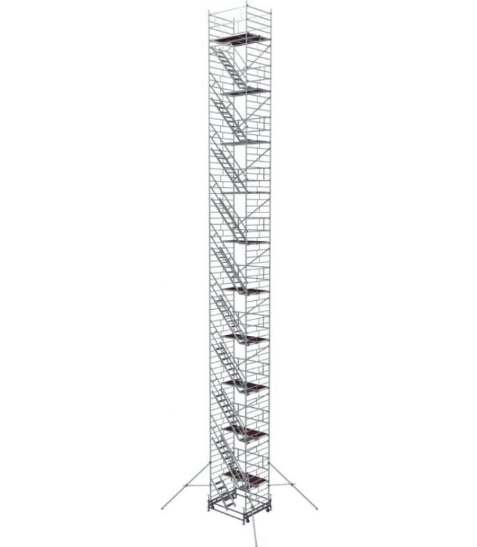 Вышка модульная алюминиевая MEGAL ВМА 1400Л/21 предназначена для организации рабочего места на высоте в строительно-монтажных, ремонтных и прочих работах. Сборка вышки производится без использования инструментов за счет наличия замкового крепления элементов. Вышка собирается из двухметровых и метровых вертикальных рам. Рамы стыкуются между собой и фиксируются крепежными скобами. Площадки соединяются наклонными лестничными маршами с рифлеными широкими ступенями, что обеспечивает комфортный подъем. Каждый марш оснащен перилами-ограждениями для безопасности. Монтируется на усиленном основании из двойной траверсы. Рабочая площадка размером 2,0 х 1,4 м позволяет с удобством расположиться четырем рабочим с инструментом. Высокая грузоподъемность обеспечивается за счет использования труб и профилей со стенкой не менее 2,5мм. Вышка имеет легкий вес за счет использования алюминиевых сплавов. Компенсация неровной поверхности возможна за счет регулирования вышки по высоте с помощью винтовых опор. Наличие поворотных колес со стопорами обеспечивает мобильность вышки.