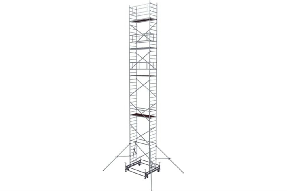 Вышка модульная алюминиевая MEGAL ВМА 700/13 предназначена для организации рабочего места на высоте с использованием лестничных маршей в строительно-монтажных, ремонтных и прочих работах. Вышка собирается из двухметровых и метровых вертикальных рам. Рамы стыкуются между собой и фиксируются крепежными скобами. Все ступени рам выполнены из рифленого профиля, что обеспечивает безопасный подъем. Используются диагональные и горизонтальные связи (стяжки). Рабочая площадка размером 2,0 х 0,7м с люком. Монтируется на усиленном основании из двойной траверсы с колесами. Мобильность вышки достигается за счет поворотных колес со стопорами. Компенсация неровной поверхности возможна за счет наличия винтовых опор, регулируемых высоте.