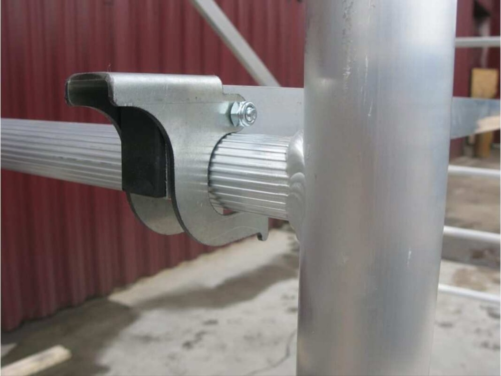 Вышка модульная алюминиевая MEGAL ВМА 700/3 используется для организации рабочего места на высоте в строительно-монтажных, ремонтных и прочих работах. Вышка собирается из двухметровых и метровых вертикальных рам. Рамы стыкуются между собой и фиксируются крепежными скобами. Все ступени рам выполнены из рифленого профиля. Для придания жесткости конструкции используются диагональные и горизонтальные связи (стяжки). Рабочая площадка размером 2,0 х 0,7м с люком. Вышка оснащена поворотными колесами со стопорами. Колеса регулируются по высоте в рамках длины винтовой опоры. Высокая грузоподъемность обеспечивается за счет использования труб и профилей со стенкой не менее 2,5мм.
