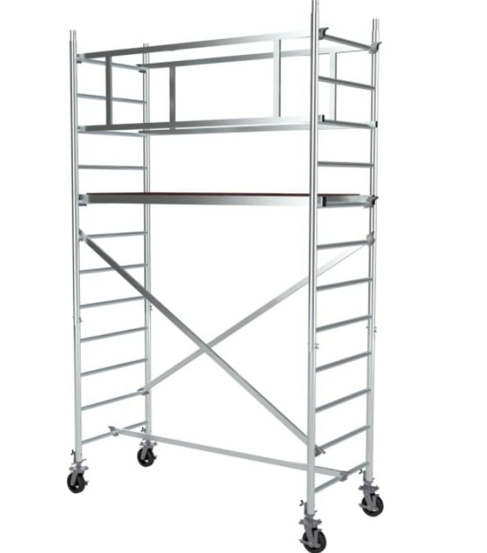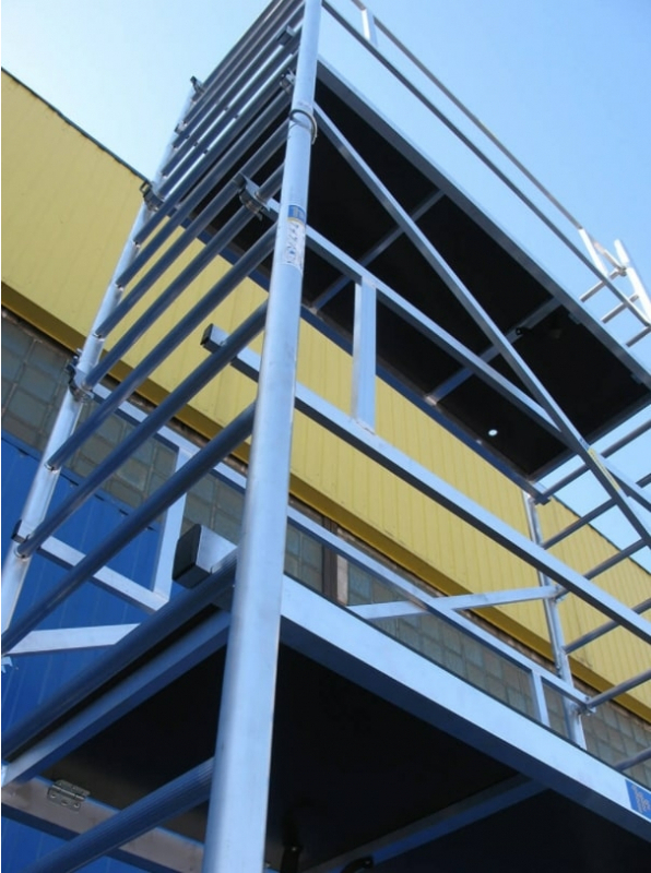 Вышка модульная алюминиевая MEGAL ВМА 700/4 используется для организации рабочего места на высоте в строительно-монтажных, ремонтных и прочих работах. Вышка собирается из двухметровых и метровых вертикальных рам. Рамы стыкуются между собой и фиксируются крепежными скобами. Все ступени рам выполнены из рифленого профиля. Для придания жесткости конструкции используются диагональные и горизонтальные связи (стяжки). Рабочая площадка размером 2,0 х 0,7м с люком. Вышка оснащена поворотными колесами со стопорами. Колеса регулируются по высоте в рамках длины винтовой опоры. Высокая грузоподъемность обеспечивается за счет использования труб и профилей со стенкой не менее 2,5мм.