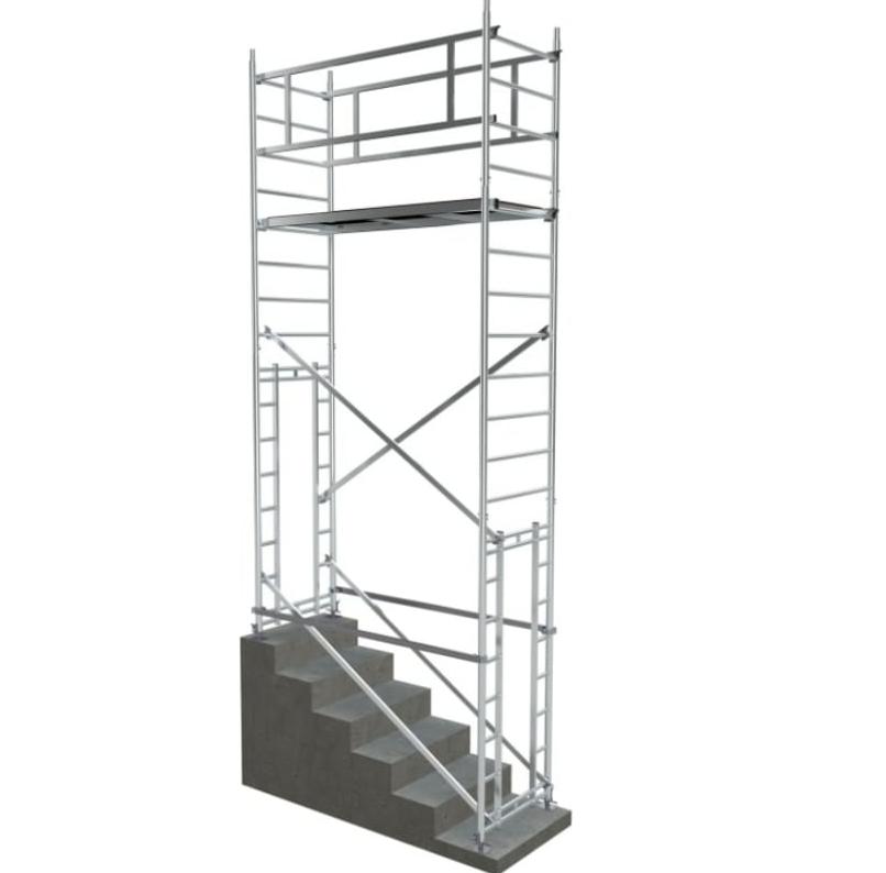 Вышка модульная алюминиевая MEGAL ВМА 700П/5 используется для подъема и организации рабочего места на высоте при работах в ограниченном пространстве: на лестничных маршах, эскалаторах.