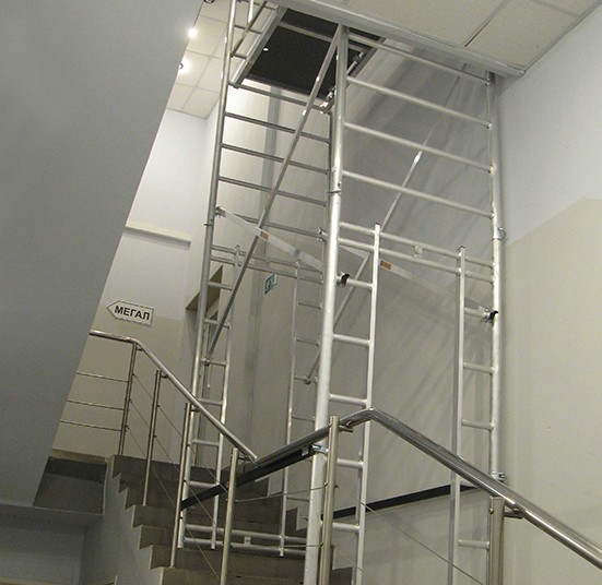 Вышка модульная алюминиевая MEGAL ВМА 700П/6 используется для подъема и организации рабочего места на высоте при работах в ограниченном пространстве: на лестничных маршах, эскалаторах.