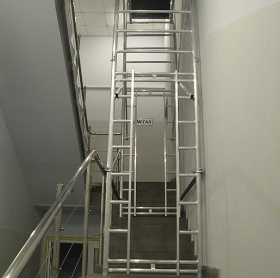 Вышка модульная алюминиевая MEGAL ВМА 700П/7 используется для подъема и организации рабочего места на высоте при работах в ограниченном пространстве: на лестничных маршах, эскалаторах.